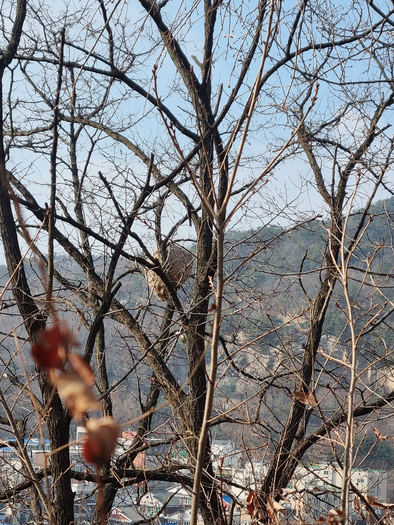 빈 가지 사이로 말벌집이