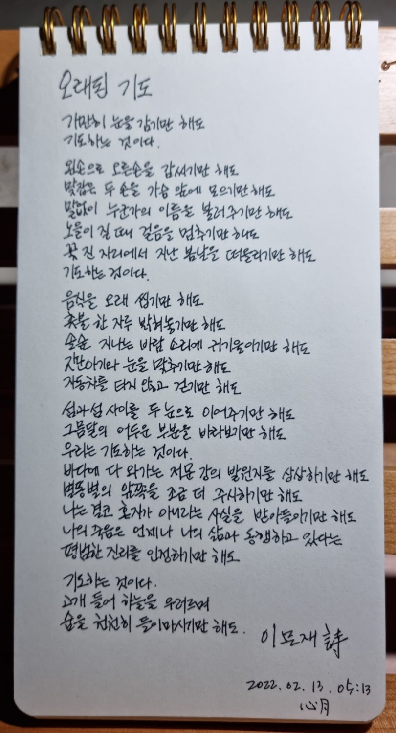 # 내가 좋아하는 시, 이문재의 오래된 기도