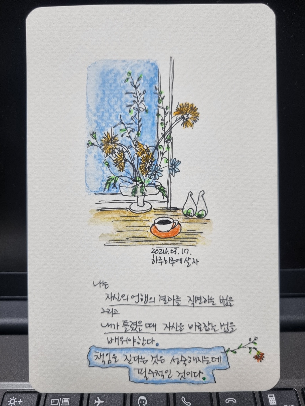 내 뜻대로 안 되는 데 어쩌라고. 그럴 때라야 비로소 '내려놓기'가 되더라. 내 뜻대로 안 된다고 성질부리지 말고 너무 애쓰지 말고 접어. 자신을 괴롭히지 말고 내버려두어. 그래야, 숨 쉴 틈이 생기더라.