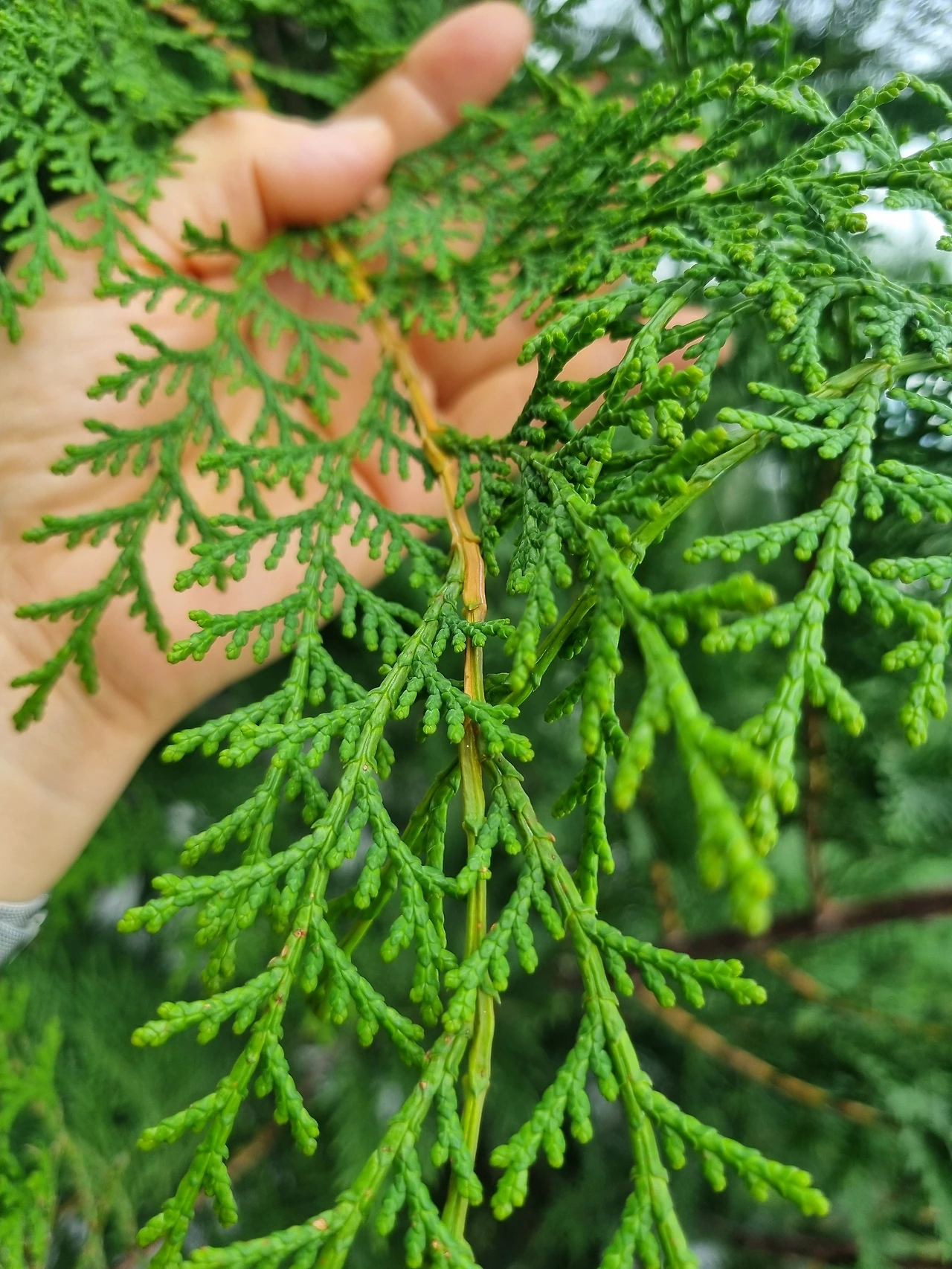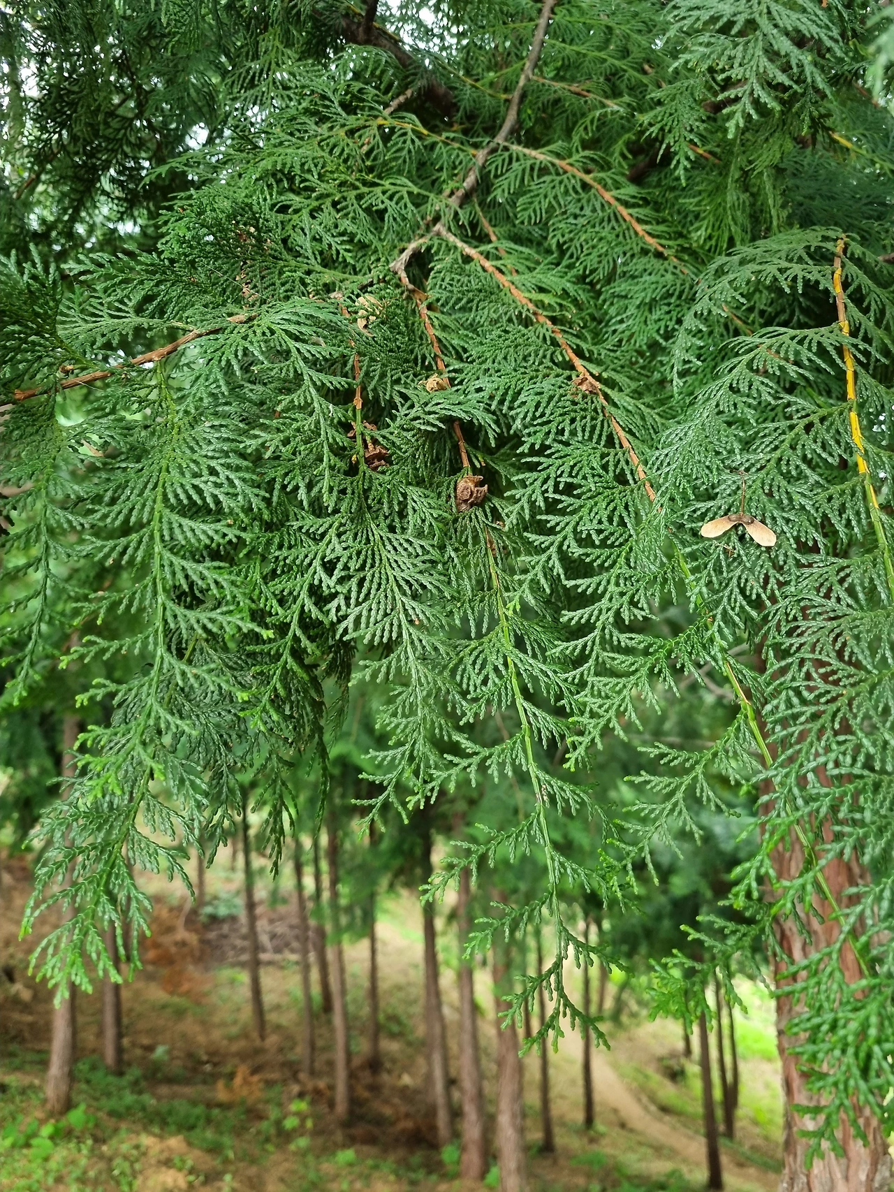 편백나무의 사촌쯤 되는 나무가 측백나무다. 성당에서 성지주일에 나눠주는 잎(聖枝)이 측백나무인데 별사탕 모양의 열매가 달리고 같은 비늘잎이라는 것만, 비슷해서 차이를 잘 모르겠다.