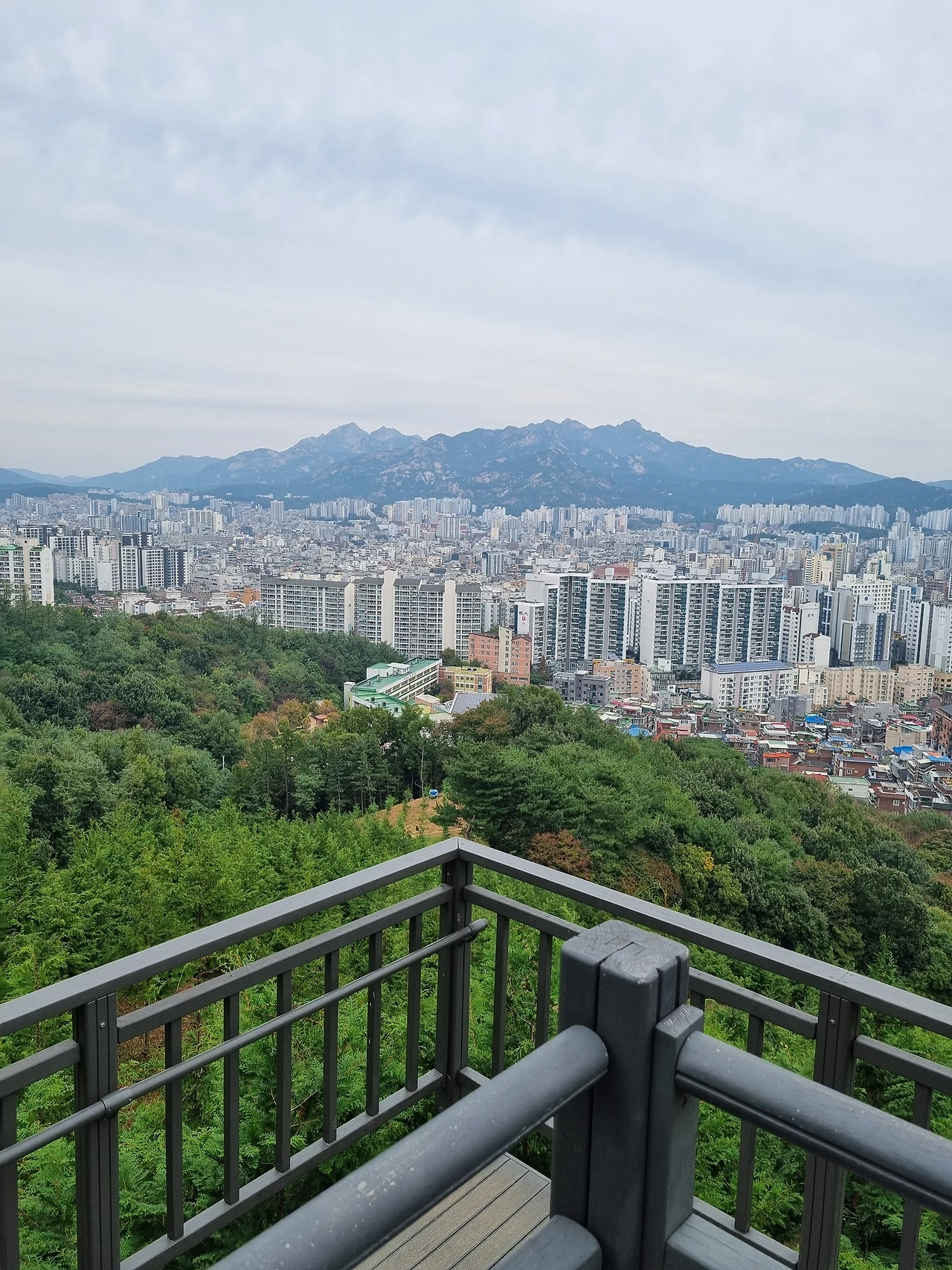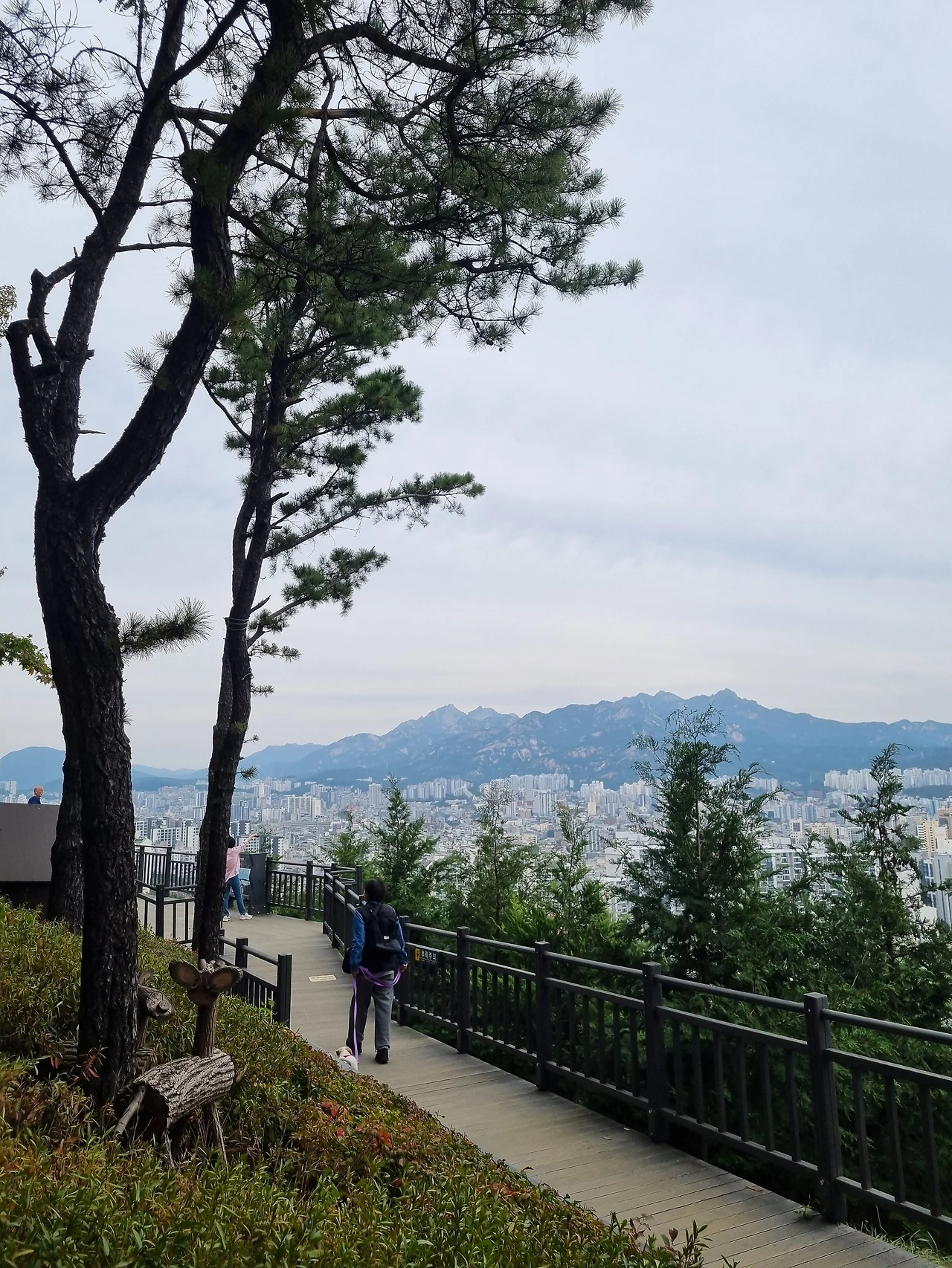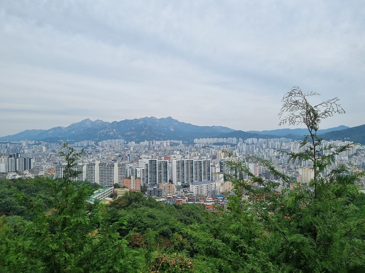 새절역에서 올라올 때 이정표로만 보고 지나친 숭실고등학교가 한눈에 들어온다. 일제 강점기 신사 참배거부로 강제 폐교되었던 학교로 유명한데 평양에서 여기까지 어떤 과정을 거쳐 자리 잡은 건지는 잘 모르겠다. 검색해서 알아보면 될 일이지만 그게 중요한 게 아니고 나무 보러 왔고 전망대에서 탁 트인 시야로 '치유받으러' 온 거니까.