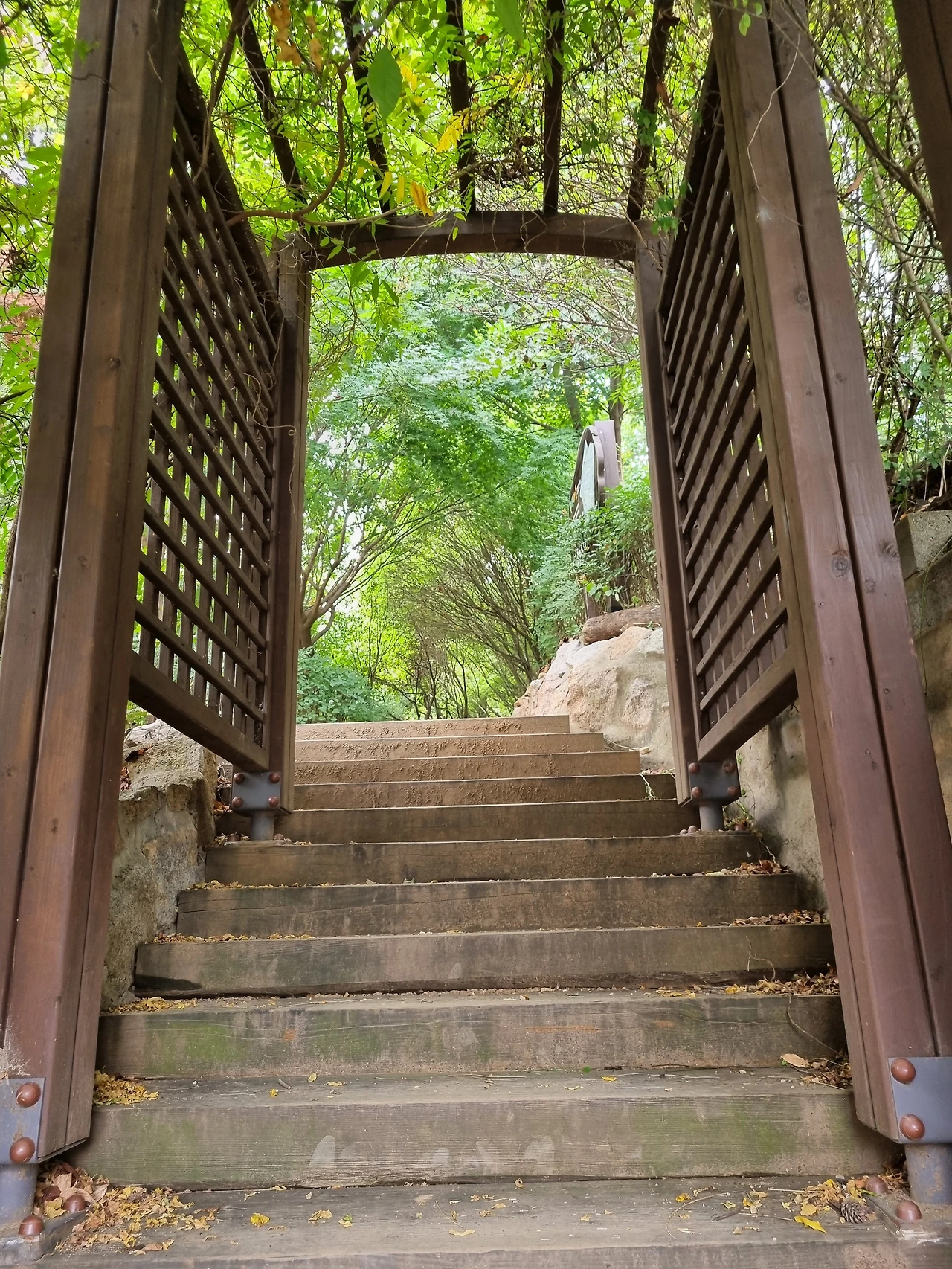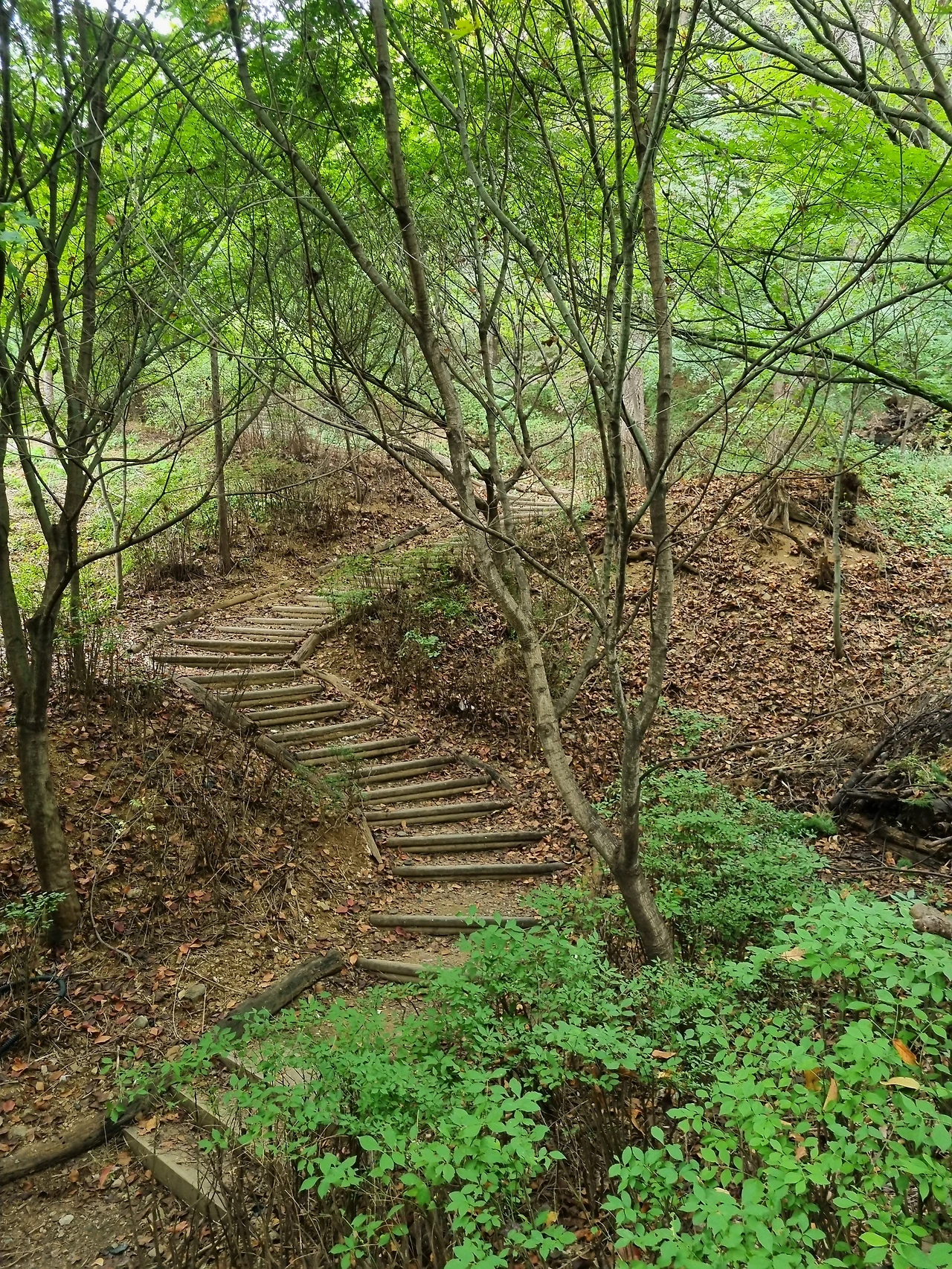 숲 속 나무 계단길이 S라인, 가지런하고 날씬하다.