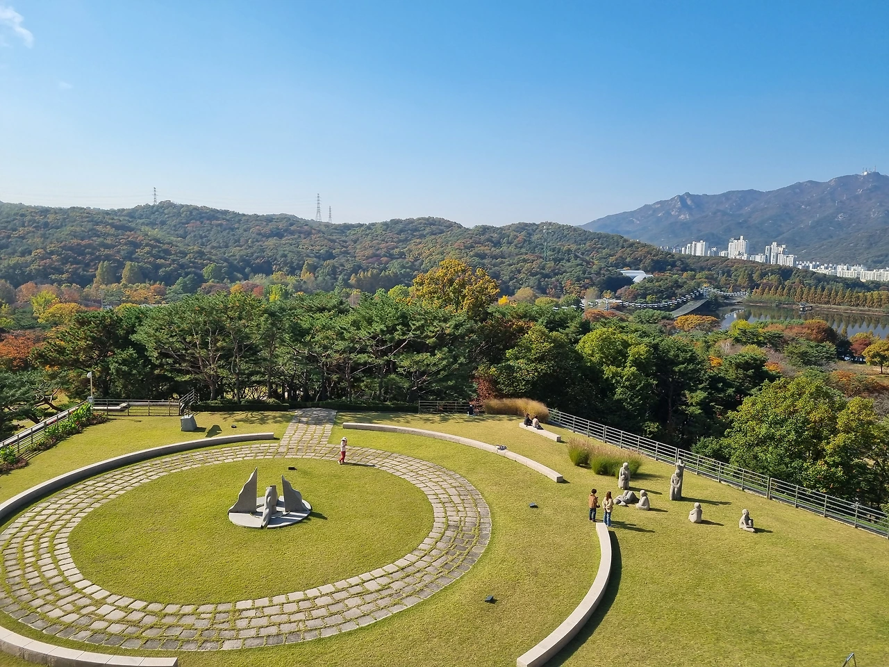 올라가면 관악산과 청계산, 그리고 호수와 서울랜드, 미술관 야외조각공원까지 가까이 다가온다.