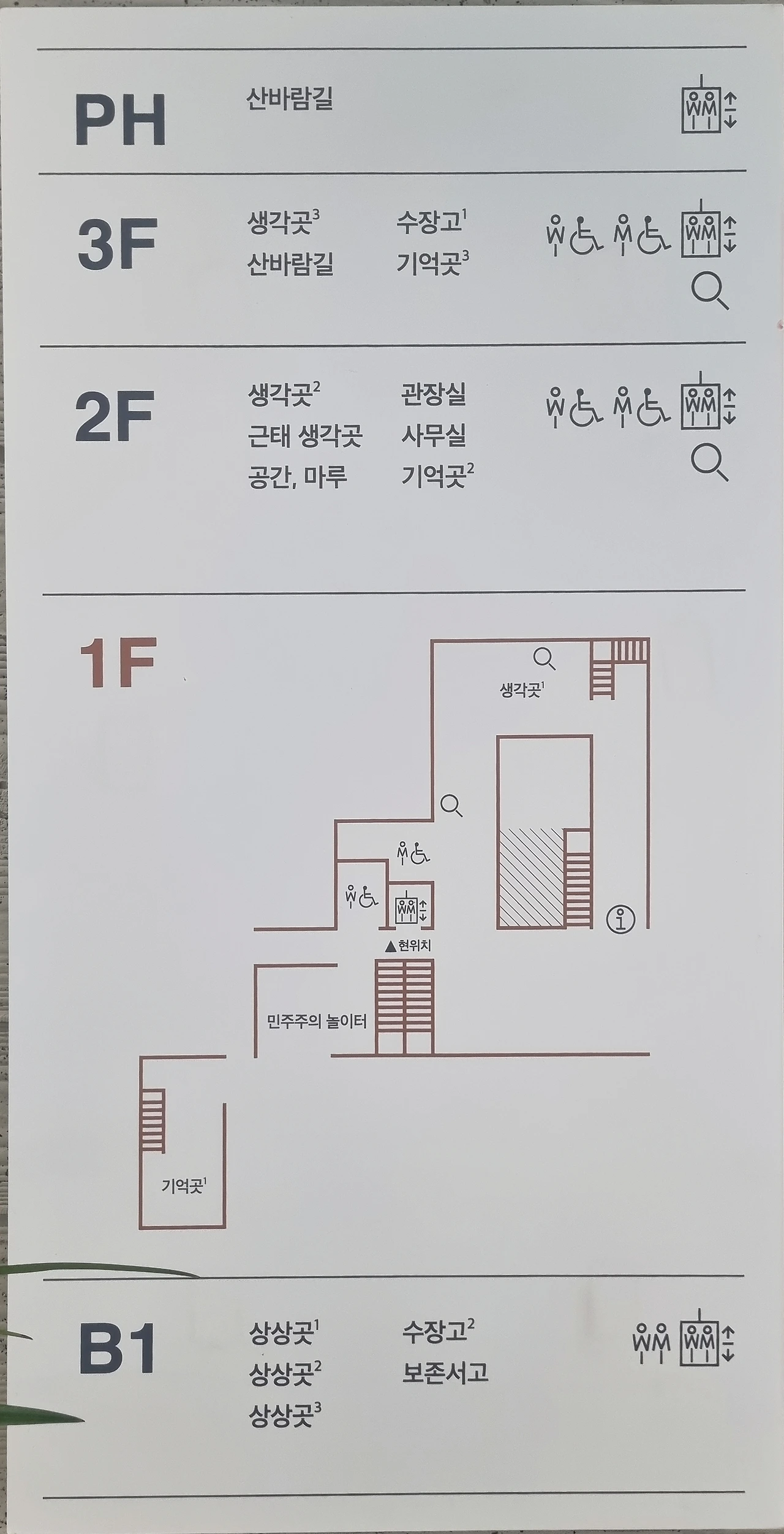 전망이 좋아 뷰를 타령하고 있지만 내가 가장 오래 머문 곳은 독립되었지만 묘하게 연결되어 있는 [기억곳]이었다. 박종철기념사업회관련해서 남영동대공분실 견학 갔을 때 김근태가 고문받은 곳, 칠성판이 놓인 자리를 가리키며 설명을 듣는 순간 온몸에 소름이 돋았던 기억이 난다. <치안본부에서 고문당한 남편의 고통을 호소합니다>라는 부인 인재근의 1985년 9월 27일의 글은 생생하다. "당신의 색시 재근이가"라는 다른 손 편지를 다 읽고 나니 울컥한다.