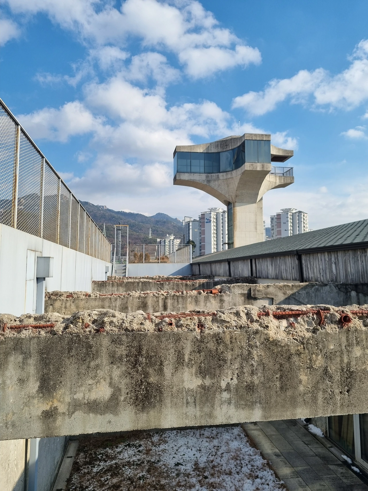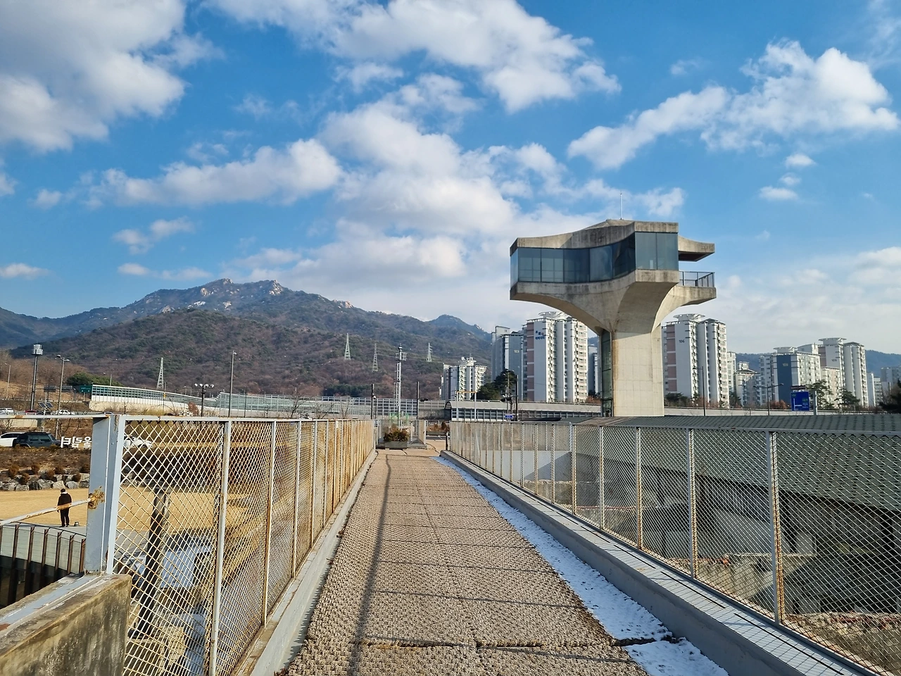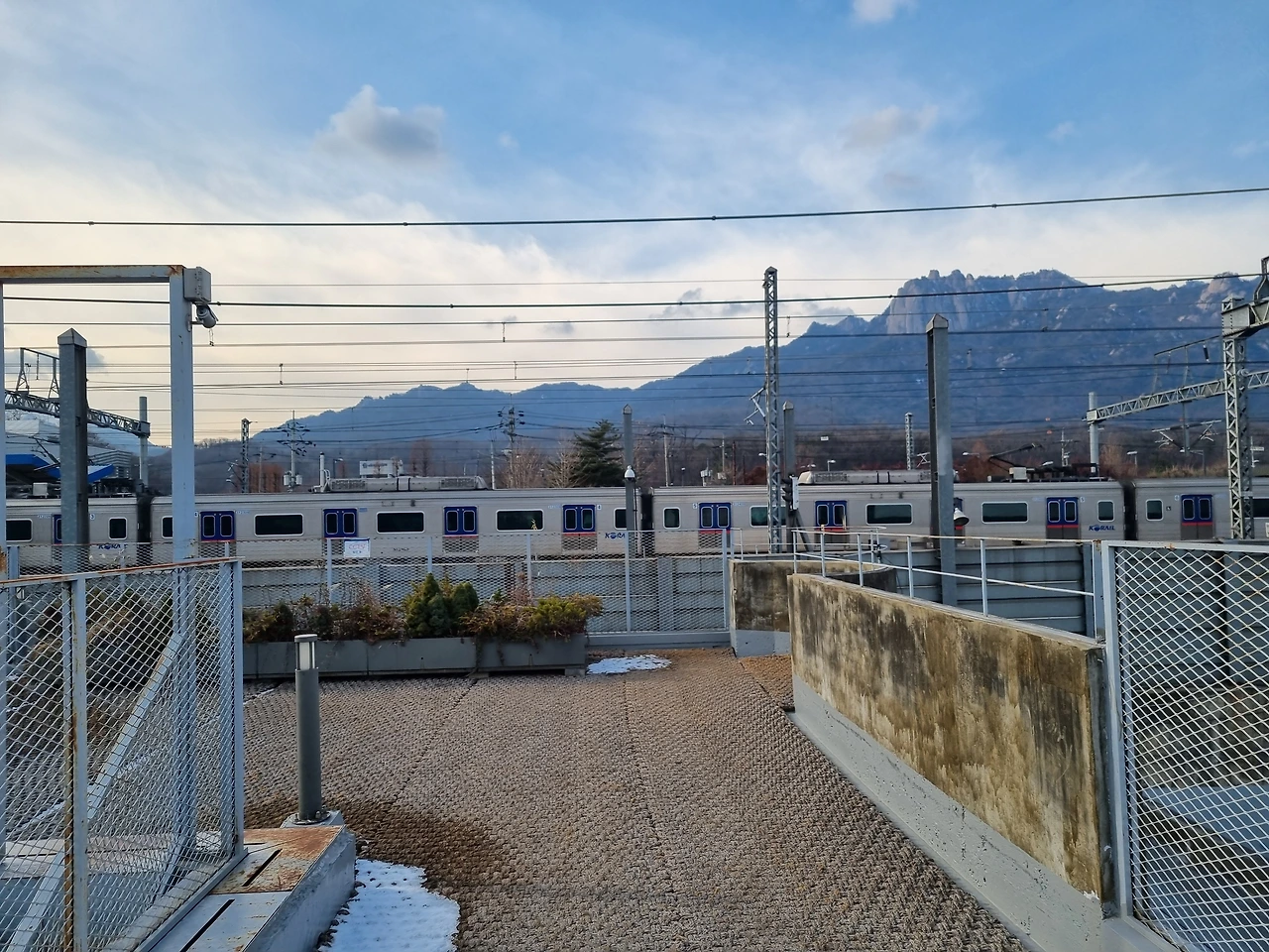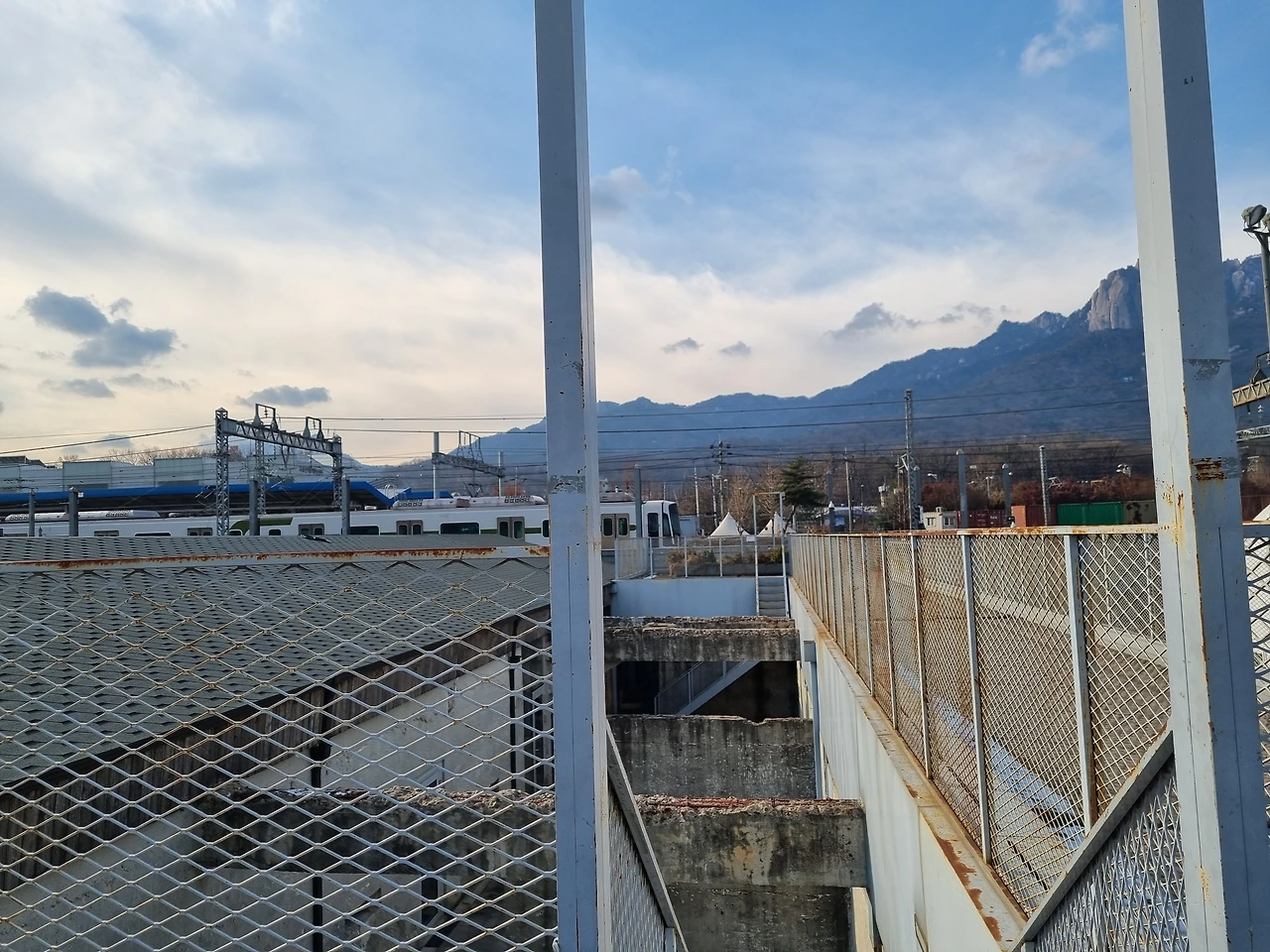 탱크가 있는 것을 보고 군사시설이라고 짐작했는데 건물구조가 숙소 같아 보여 검색해 보니 2층~4층은 시민아파트였다고 한다. 지금은 흔적만 남아있는 공간으로 계단 따라 올라갔더니 수락산과 도봉산이 마주 보고 있었다. 도봉산 쪽으로 쭉 걸어가면 코앞에서 지나가는 전철을 볼 수도 있다.