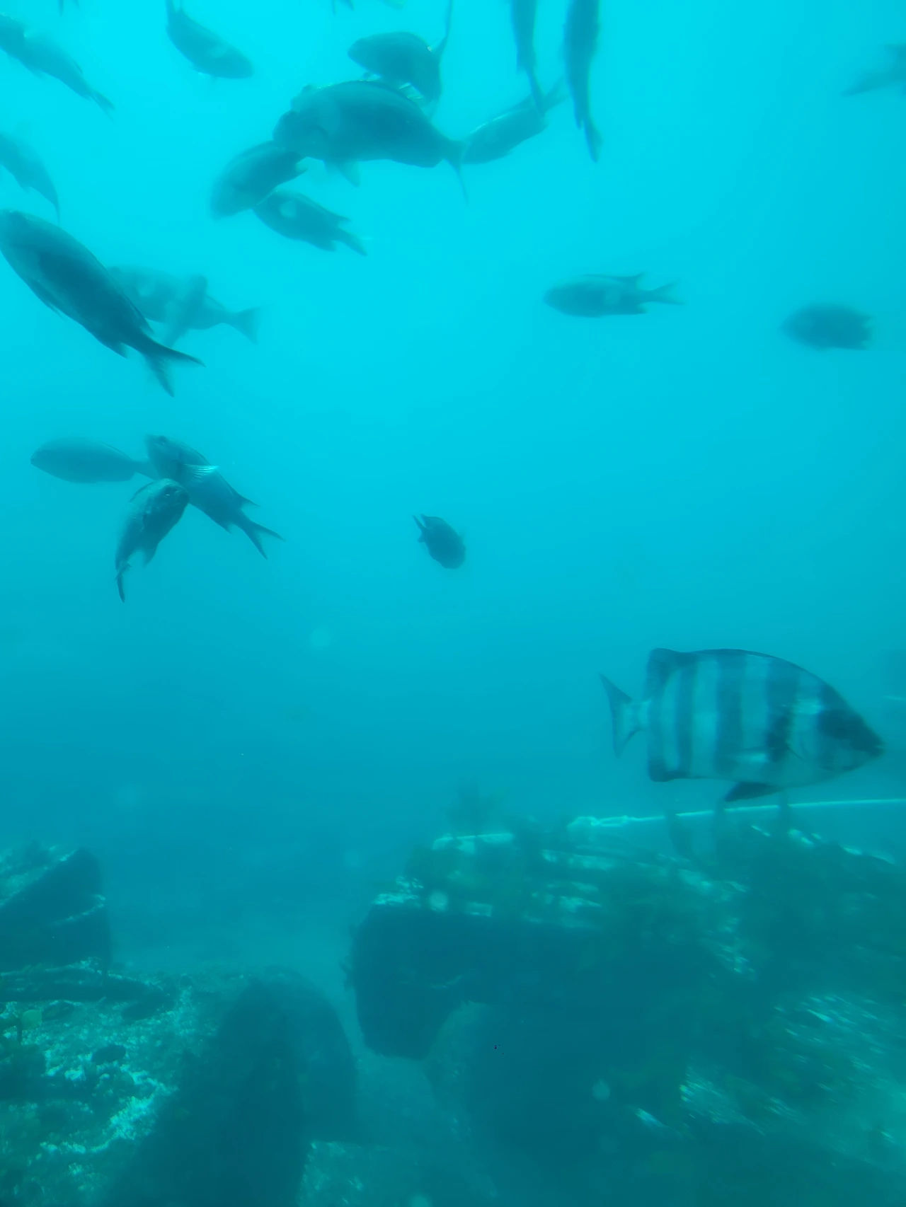 육지에서는 늘 죽은 모습으로 마주한 바다물고기들이 바다의 당당한 주인으로 눈에 광채를 내며 헤엄치는 모습이 멋졌습니다. 물고기와 눈이 마주치는 순간도 매우 특별했습니다. 그런데 순간 저도 모르게 남편에게 "오늘 저녁에는 생선찌개 먹자." 말하고 말았습니다. 매운탕이 얼마나 생각나던지 ㅜ ㅜ