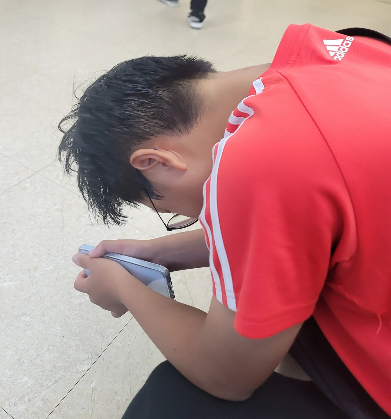 중1 소년은 거의 무표정입니다.