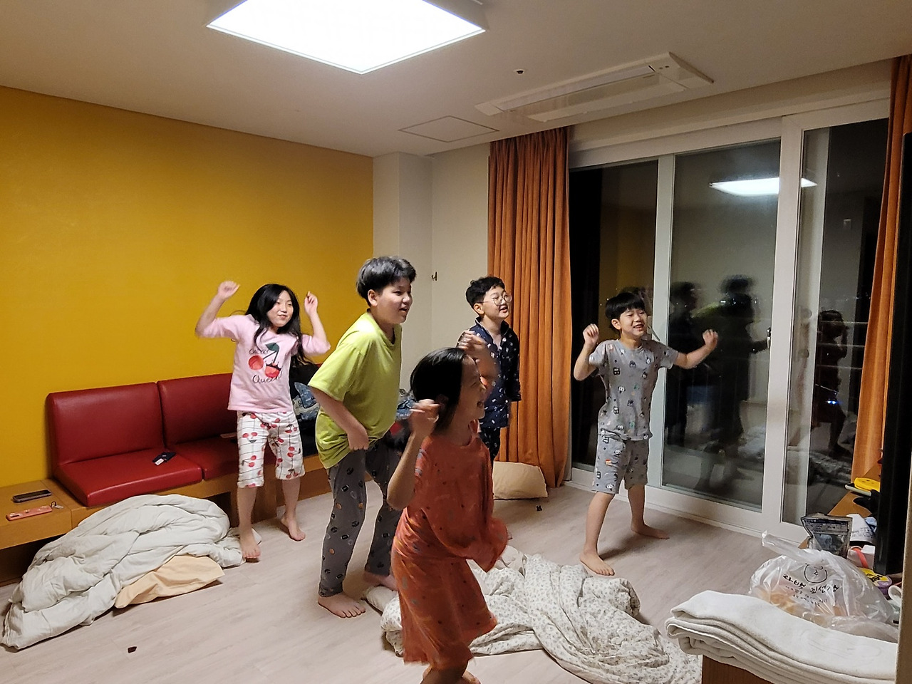 숙소에 돌아오자마자 아기곰들은 싸이 노래를 틀고 군무를 추기 시작합니다. 춤과 노래는 사람들의 마음을 입체적으로 빚어냅니다. 아이들은 그 누구도 의식하지 않고 자신들의 마음을 춤으로 표현하고 있습니다. 아기곰들이 언젠가 이 글을 읽게 되면, 너의 인생은 너 밖에 살아낼 수 없으니 너 이외의 변수들이 생겨도 해결은 하되, 흔들리지는 말라고 이야기 해 주고 싶습니다. 다른 사람들을 의식하지 말고, 다른 사람들의 기준으로 너를 판단하지 말고, 오직 네가 치열하게 고민해서 자신에게 주어진 시간들을 해방시켜 가라고 이야기해주고 싶습니다.