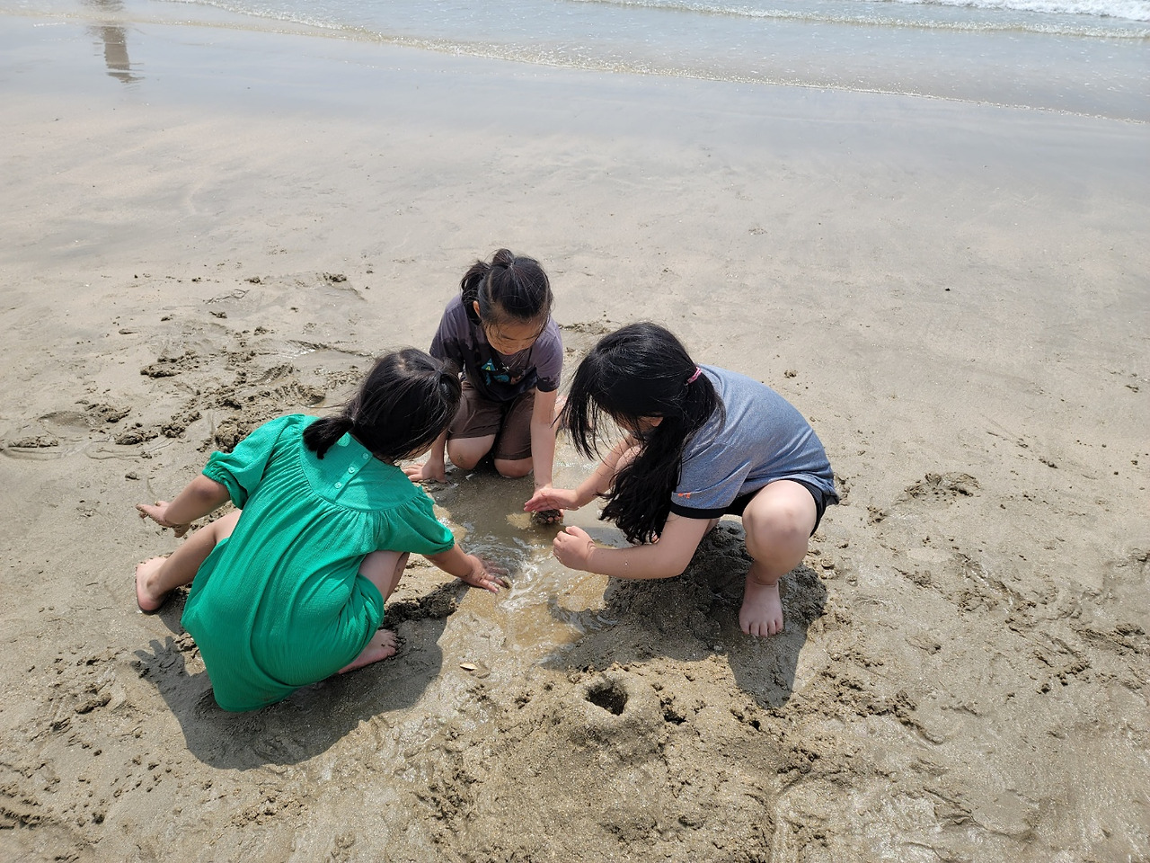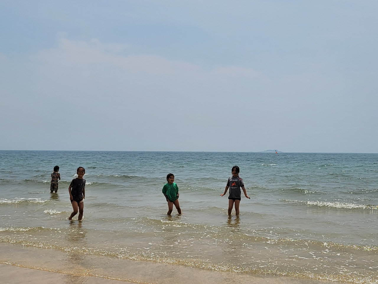 그렇게 서해바다에 도착하고 아이들은 갑자기 바다에 뛰어들어 물놀이를 하기 시작합니다.