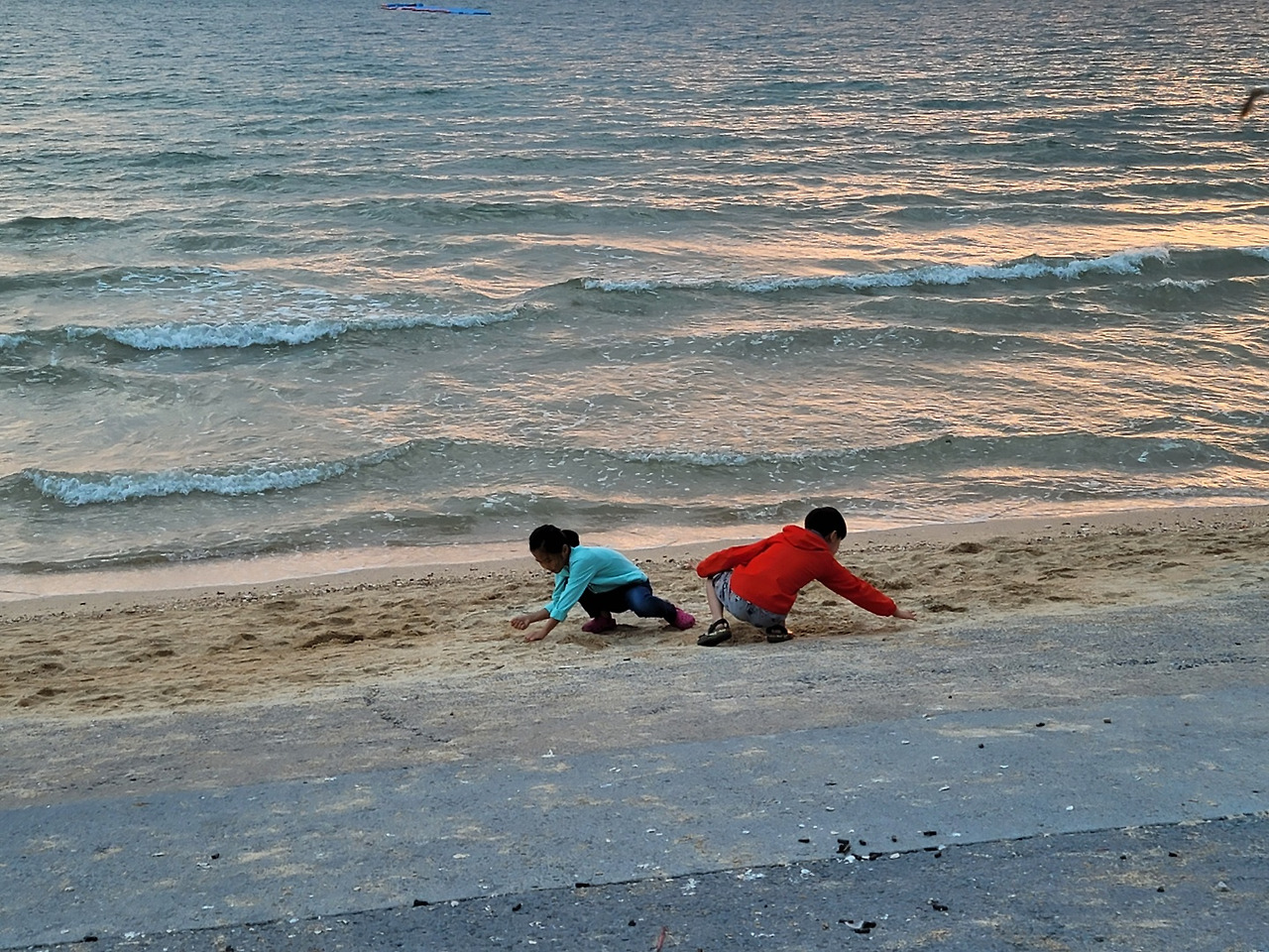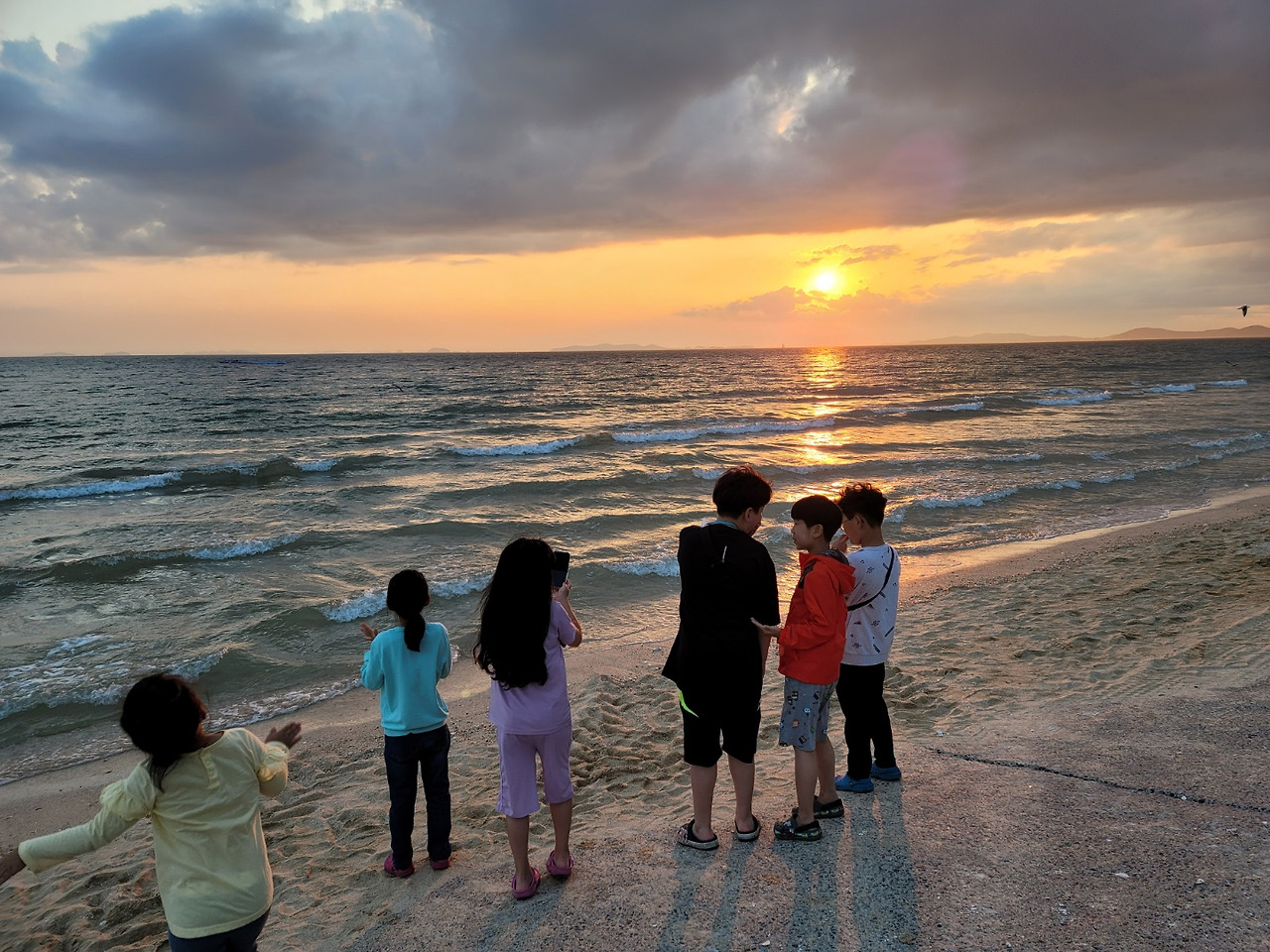 가슴에 손을 얹고 말씀드리지만 저는 정말 기대도 하지 않았습니다. 서해바다는 저에게 무언가를 기대하게 만드는 그런 여행지가 아니었거든요. 어두운 바다와 구름 사이에서 오늘의 마지막을 불태우는 저 태양빛을 아기곰들은 아무 말 없이 바라봅니다.