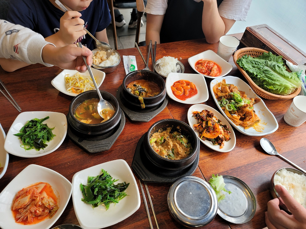 숙소를 정리하고 서울로 올라가는 길. 우렁쌈밥이 맛있다는 <우렁이박사>식당에 가서 이른 점심을 먹었습니다. 식당 이름이 입에 붙지 않아, 아빠곰은 "지렁이 식당까지 몇 키로 남았어?" 엄마곰은 "구렁이식당 거의 다 왔어."라고 우리의 하찮은 기억력을 극복하지 못하고 남의 상호를 막 변형시킵니다.