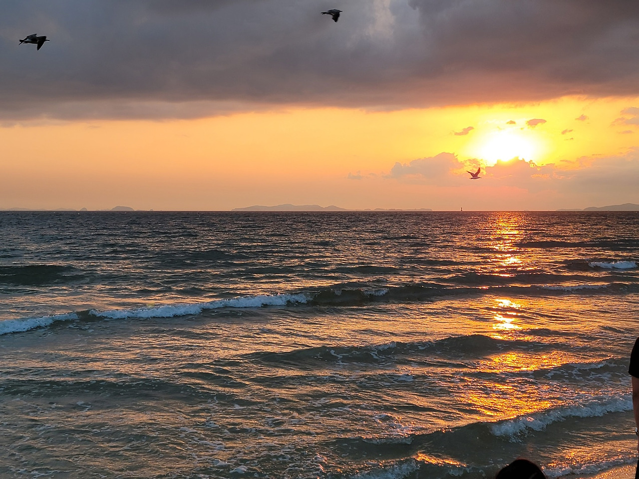 다 먹고 나서, 쉬다가 우리는 일몰시간을 확인하고 다시 바다로 출발합니다. 기대는 없었습니다. 날이 점점 흐려지고 있고, 구름이 바다 위에 눕기 시작했거든요.