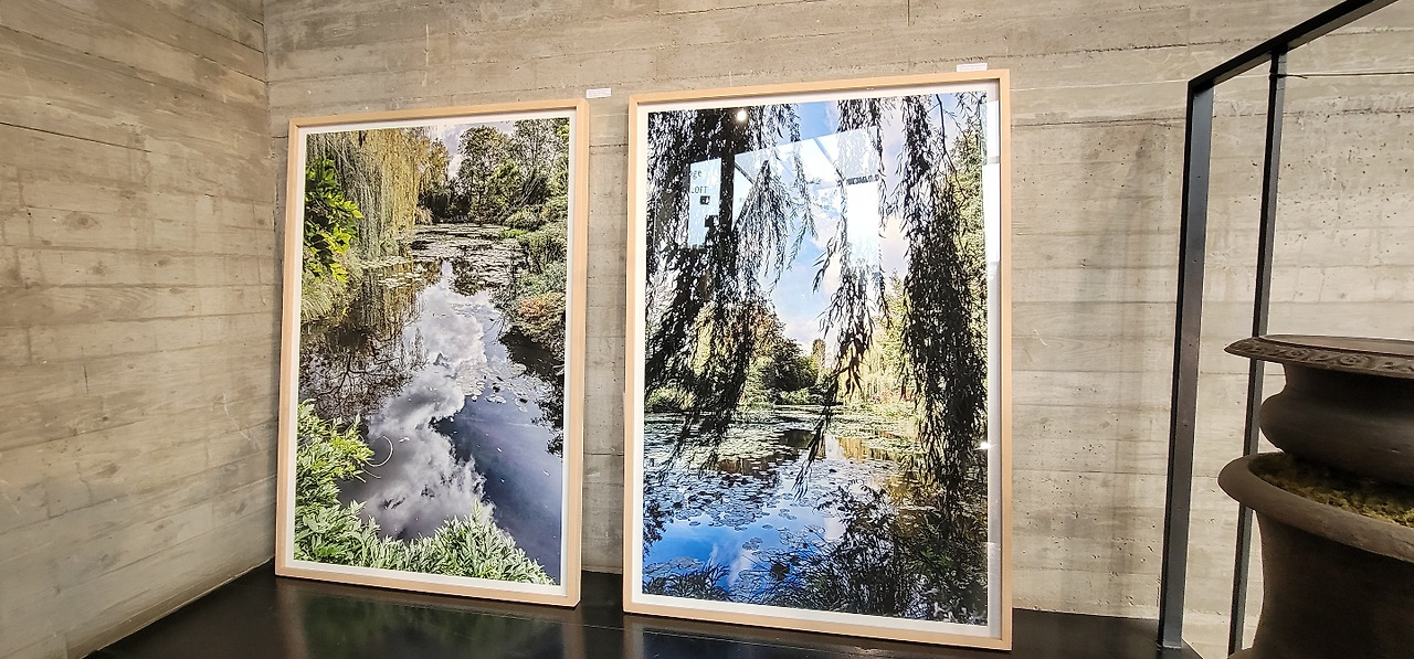 3층 공간 어딘가에 놓여진 연못 사진들