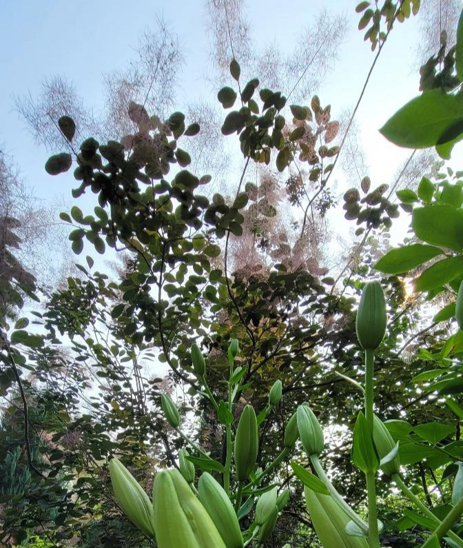 안개나무가 더운 6월 말의 하늘을 온 몸으로 바라보고 있습니다.