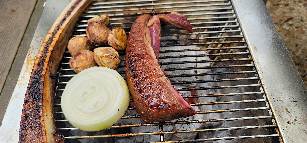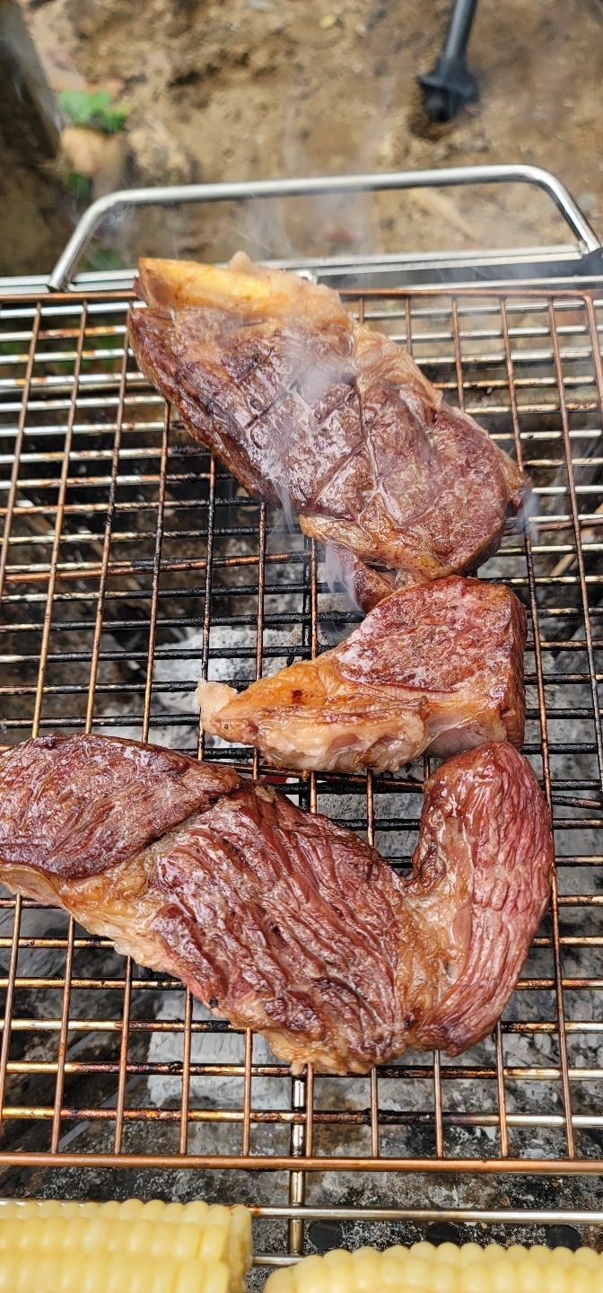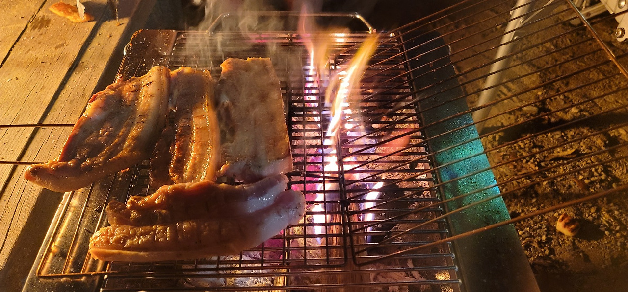 동생 텐트에서 세상 제일 맛있는 삼겹살과 소고기를 구워 먹었습니다.