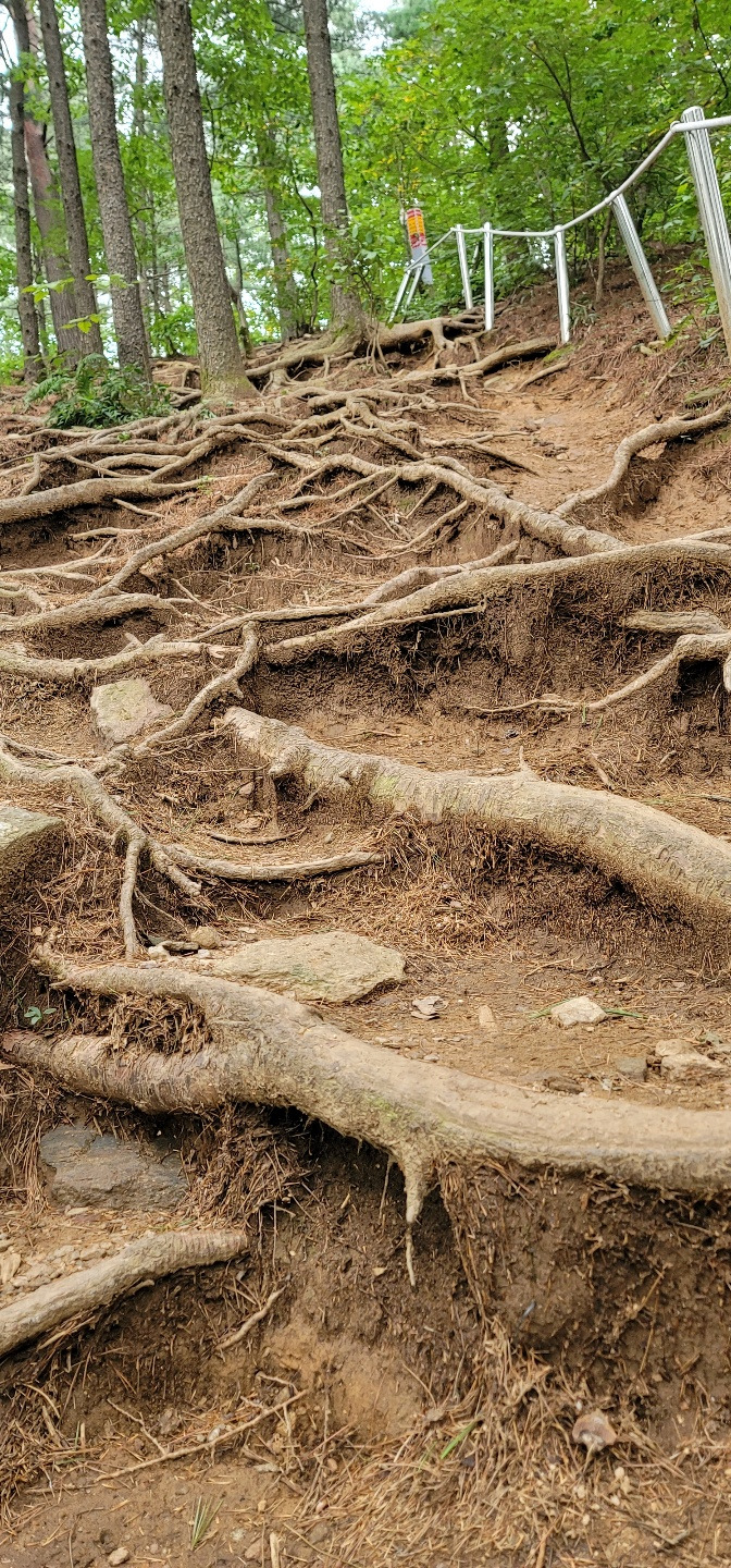 이렇게 산에 오르는 것만큼 내려가는 게 곤혹스러운 등산로에서 한참 후에 20대 등산객 3명을 마주쳤습니다. 너무 반가워서 저 혼자 엄청 빨개진 얼굴로 그들을 보며 활짝 웃었습니다.(그 분들은 공포스러웠겠죠 ㅜ ㅜ)