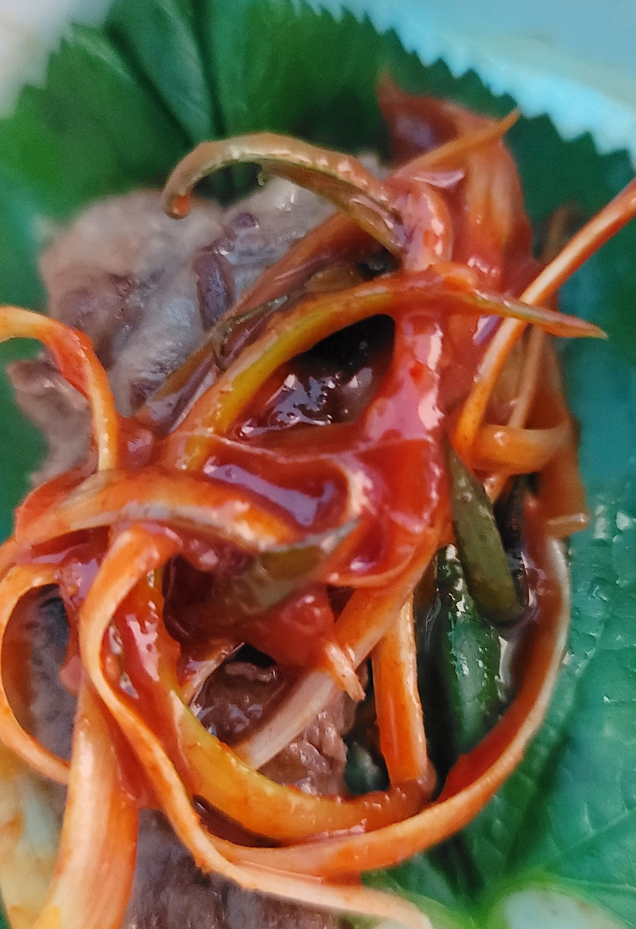 나는 쌈채소를 싫어하는데 유일하게 곰취를 좋아한다. 고기향이 가려지는 걸 싫어해서 쌈장도 안먹지만, 곰취의 향은 나를 너무 행복하게 한다. 곰취 잎의 모양도 향도 맛도 딱 내 취향이다. 곰취에게 감탄하는 나를 보며 남편이 무슨 말을 하고 싶어하는데, "당신이 곰이라서 곰취가 맛있는거 아닐까?"라는 말을 할 거라는 예상에 말할 틈을 아예 주지 않기로 했다. 결국 나는 저녁을 먹자마자 아까 장을 본 마트를 다시 가서 곰취를 싹쓸이 해왔다ㅋㅋㅋ