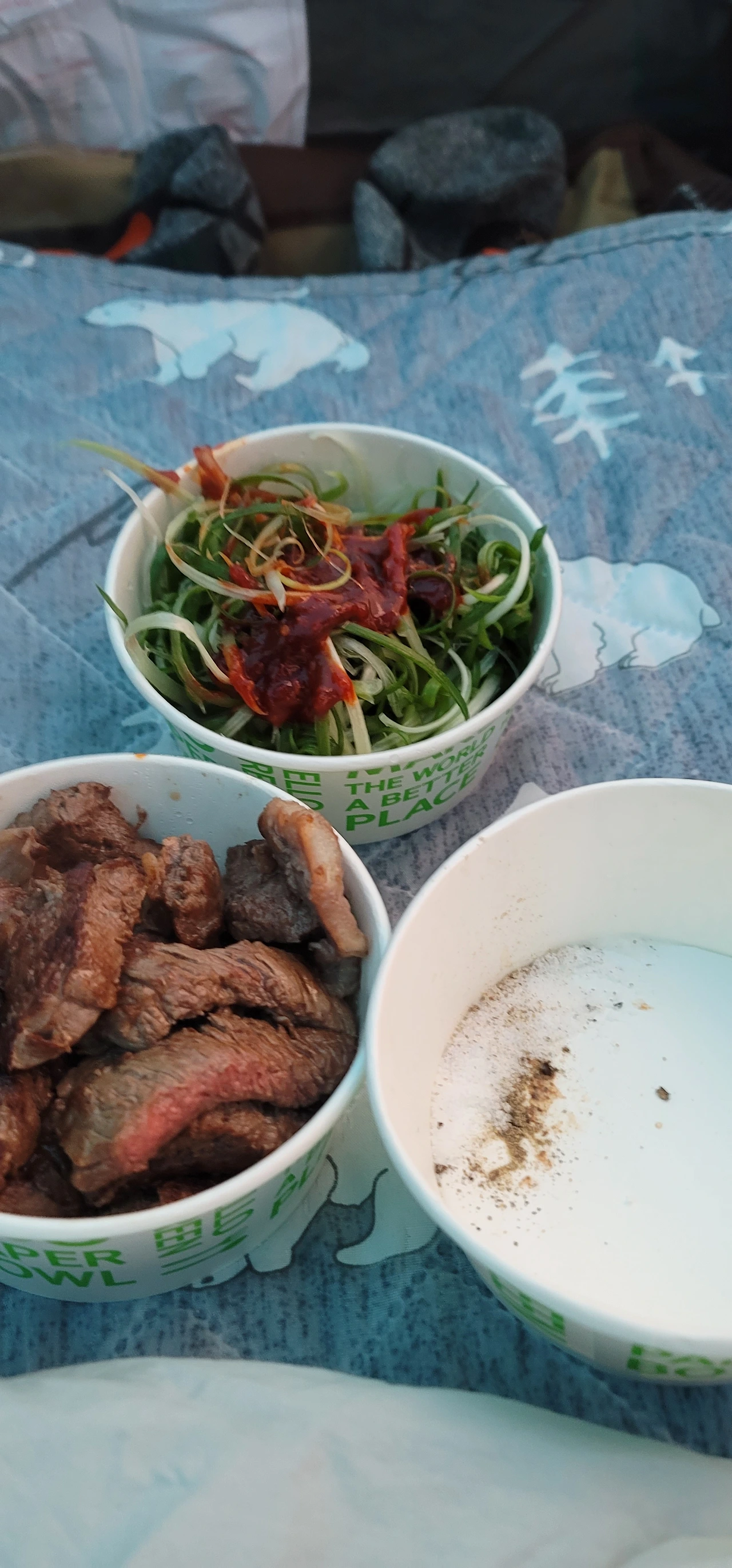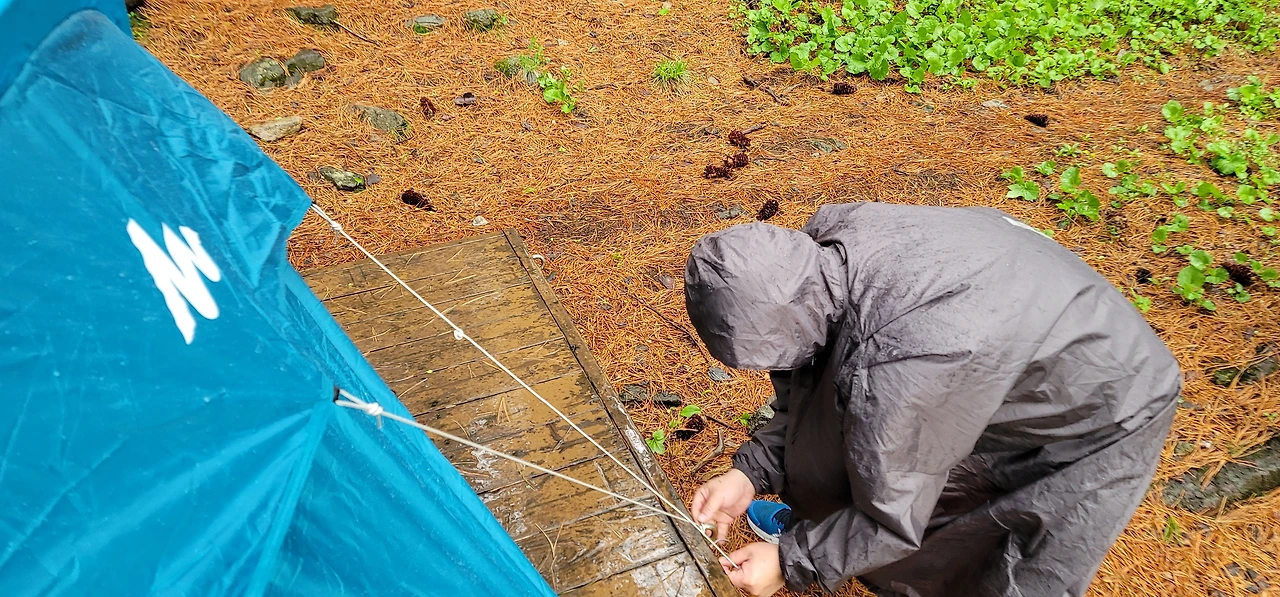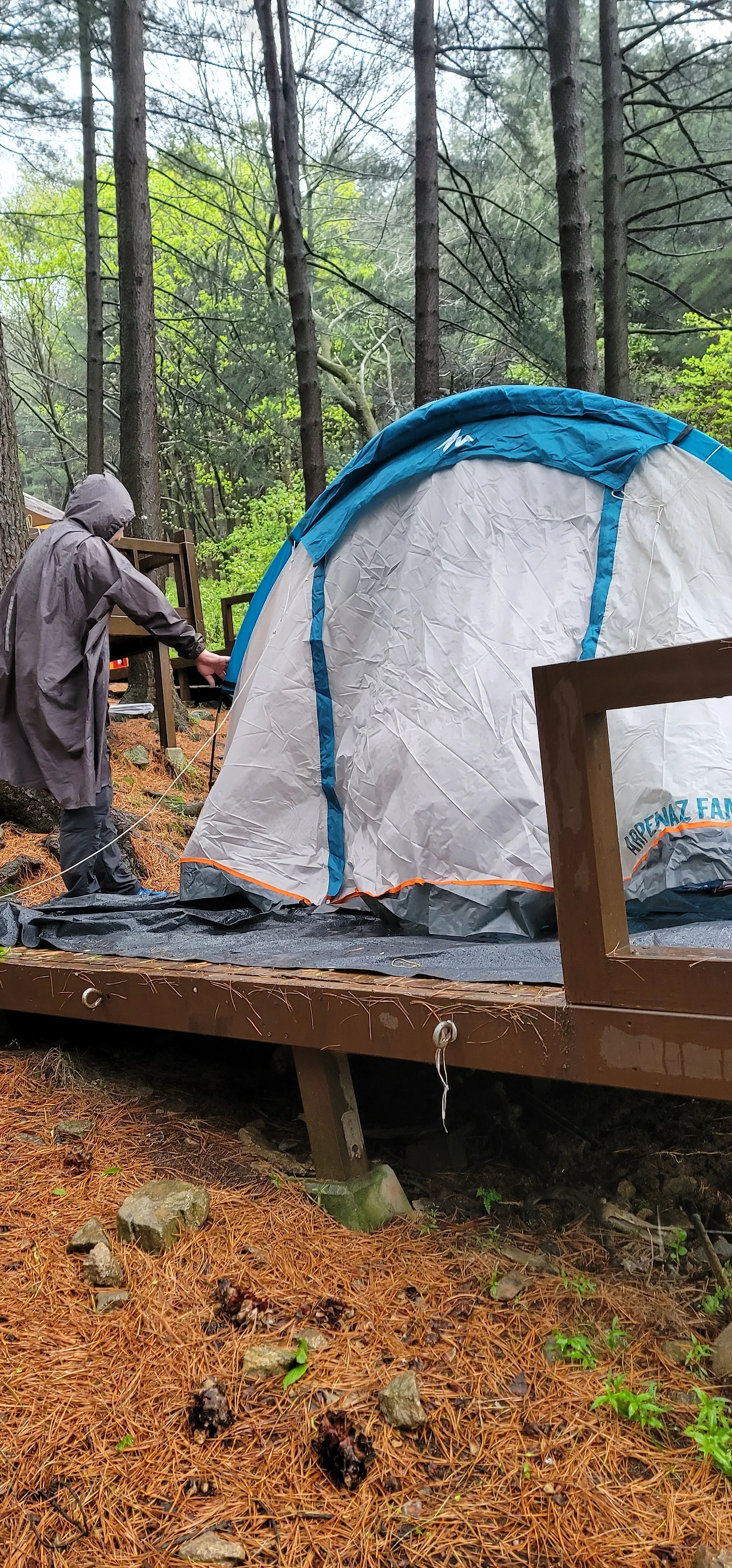 남편은 텐트를 완성하고, 나는 짐을 나른다. 한참동안 비바람과 싸운 우리는 체력이 바닥났고, 이불에 뻗어버렸다. 나는 잠들고 남편은 짐 정리를 한 것 같다.