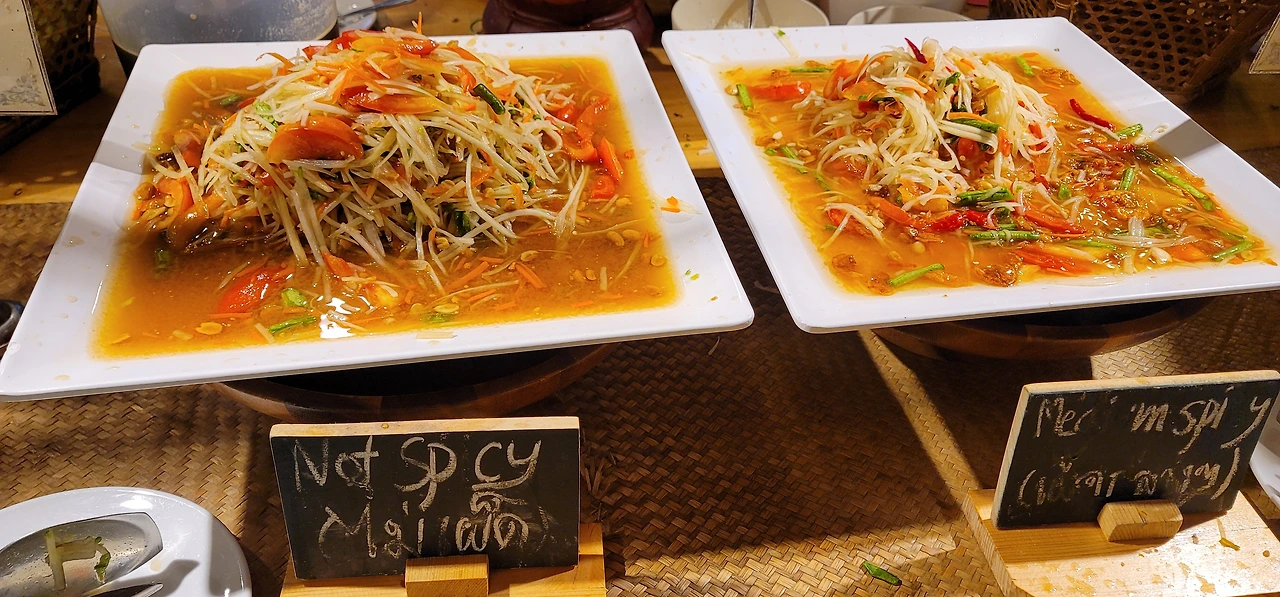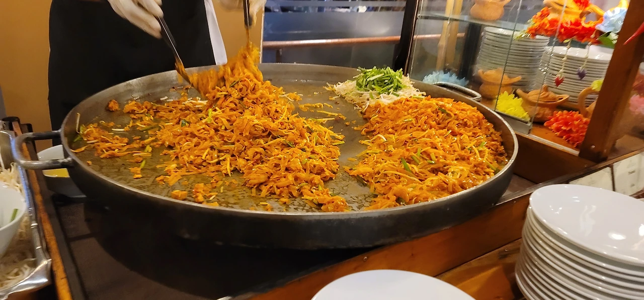 시암니라밋 레스토랑은 태국식, 중국식 메뉴로 나누어져 있는데 자국의 음식 코너는 아름다운 조명과 식재료 장식, 전통의상을 입은 사람들의 정성스런 서빙으로 이루어져 있고, 중국식 음식 코너는 말 그대로 인스턴트 음식처럼 그냥 평범하게 나열되어 있습니다. 이 극장의 소유주가 태국인이 아닐수도 있지만, 저는 이동하는 곳마다 그들에게서 자신들의 문화에 대한 깊은 자긍심을 느낄 수 있었습니다.