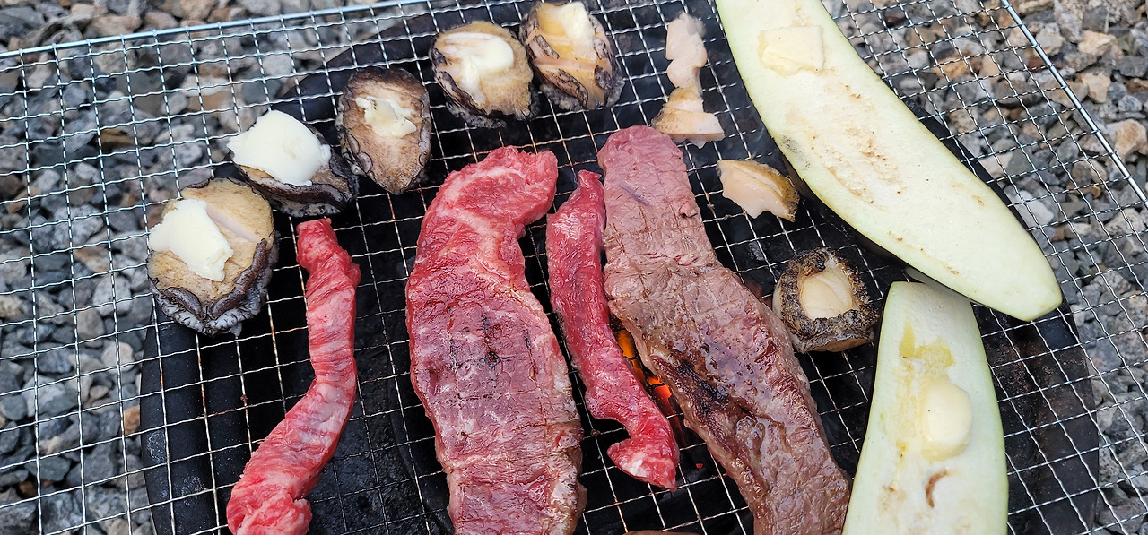 남편 없이 제 생애 첫 숯불을 피우고, 고기와 채소로 맛있는 저녁식사를 합니다.