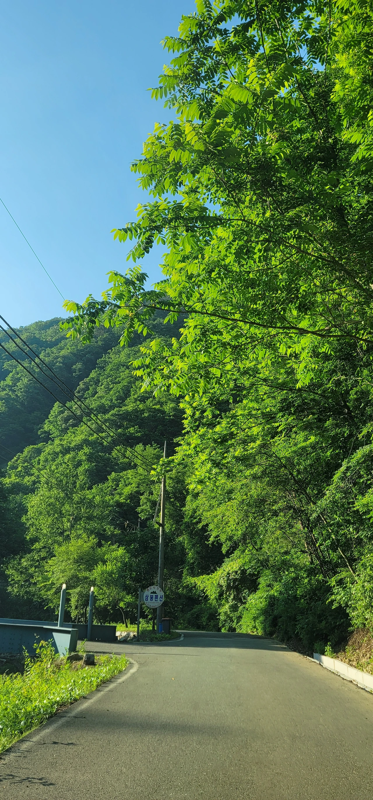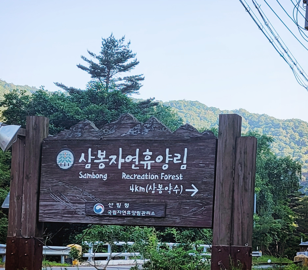 이제 바다에서 숲으로 이동합니다. 강릉에서 2시간에 걸쳐 굽이진 산간도로를 지나니 삼봉휴양림 진입로가 시작됩니다.