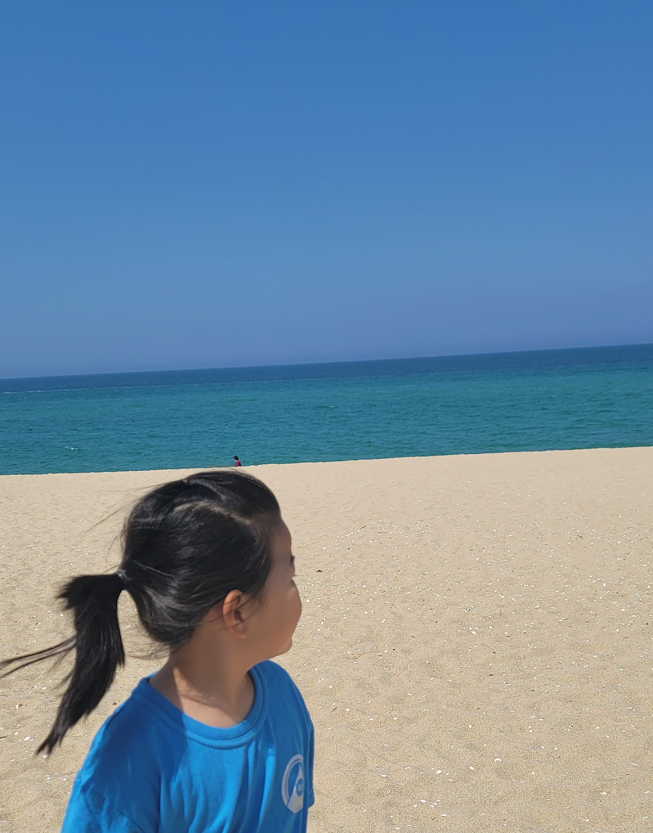 바다 앞에서 우리집 막내는 누구의 딸, 누구의 동생에서 벗어나 자연 대 자연으로, 독립된 존재로 서 있습니다. 수 천, 수 만의 시간이 이 아이를 관통하기 위해 숨죽여 기다리는 숨결도 느껴집니다. 아이들 앞에서 더욱 조심하고 겸손해져야 한다는 지혜가 바다에서 제게로 흘러 들어옵니다.