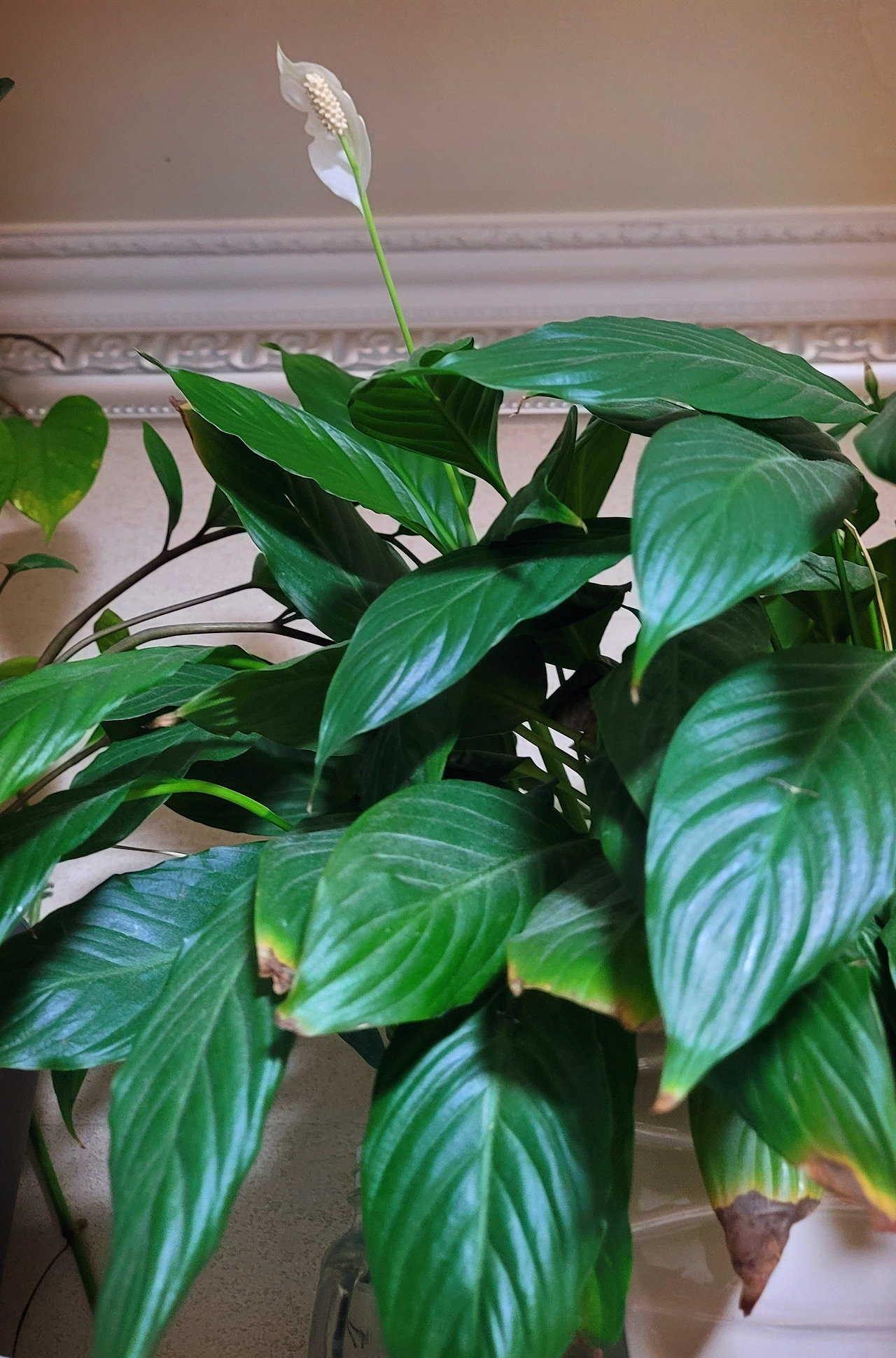 스파트필름은 참 신기합니다. 생생하다가 어느 날 갑자기 모든 잎을 축 늘어뜨립니다. 그럼 만사를 제쳐놓고 물부터 흠뻑 주어야 합니다. 일주일에 한번 물주기를 놓치면 저런 신호를 보내는데, 아마 우리집의 모든 식물은 스파트필름의 민감성 덕분에 건강하게 살아있는 것 같습니다.