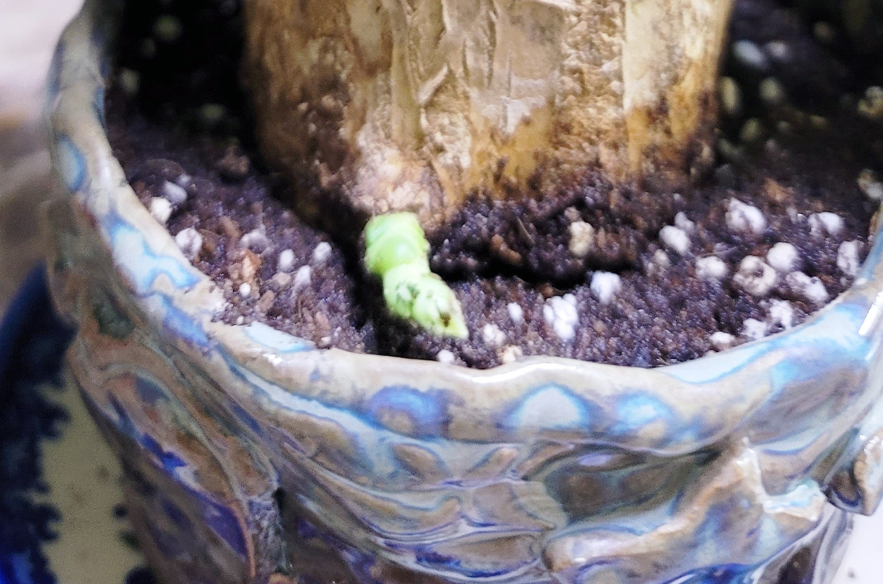 몸길이 10센치의 행운목이 그 두꺼운 나무껍질에서 예쁜 새싹을 틔웠습니다. 너무 곱고 예쁘지만 그럴수록 한걸음 떨어져서 담담하게 바라봅니다.