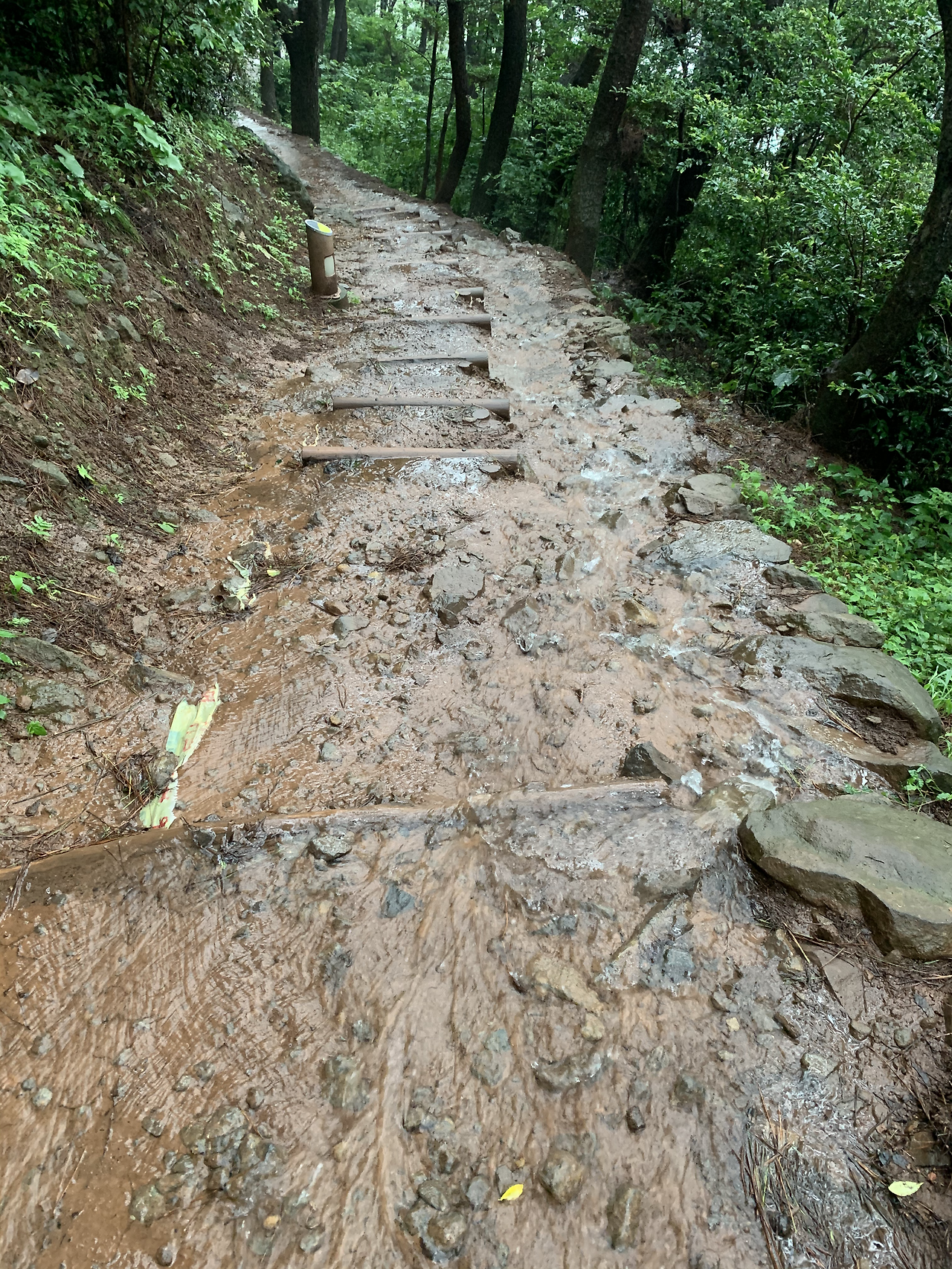 3코스도 비와 습도 때문에 힘들었다. 무엇보다 초반에 나오는 봉대산 등산이 쉽지 않았다. 인적이 드문 등산길이라 그런지 풀에 길이 거의 가려져있는 경우도 있고, 인적이 너무 드물고 거미줄이 많아서 잘 가고 있는지 계속 의문을 가지면서 산을 오르고 올랐다. 봉대산을 오르내리는 동안 사람은 단 1명 만났었다.