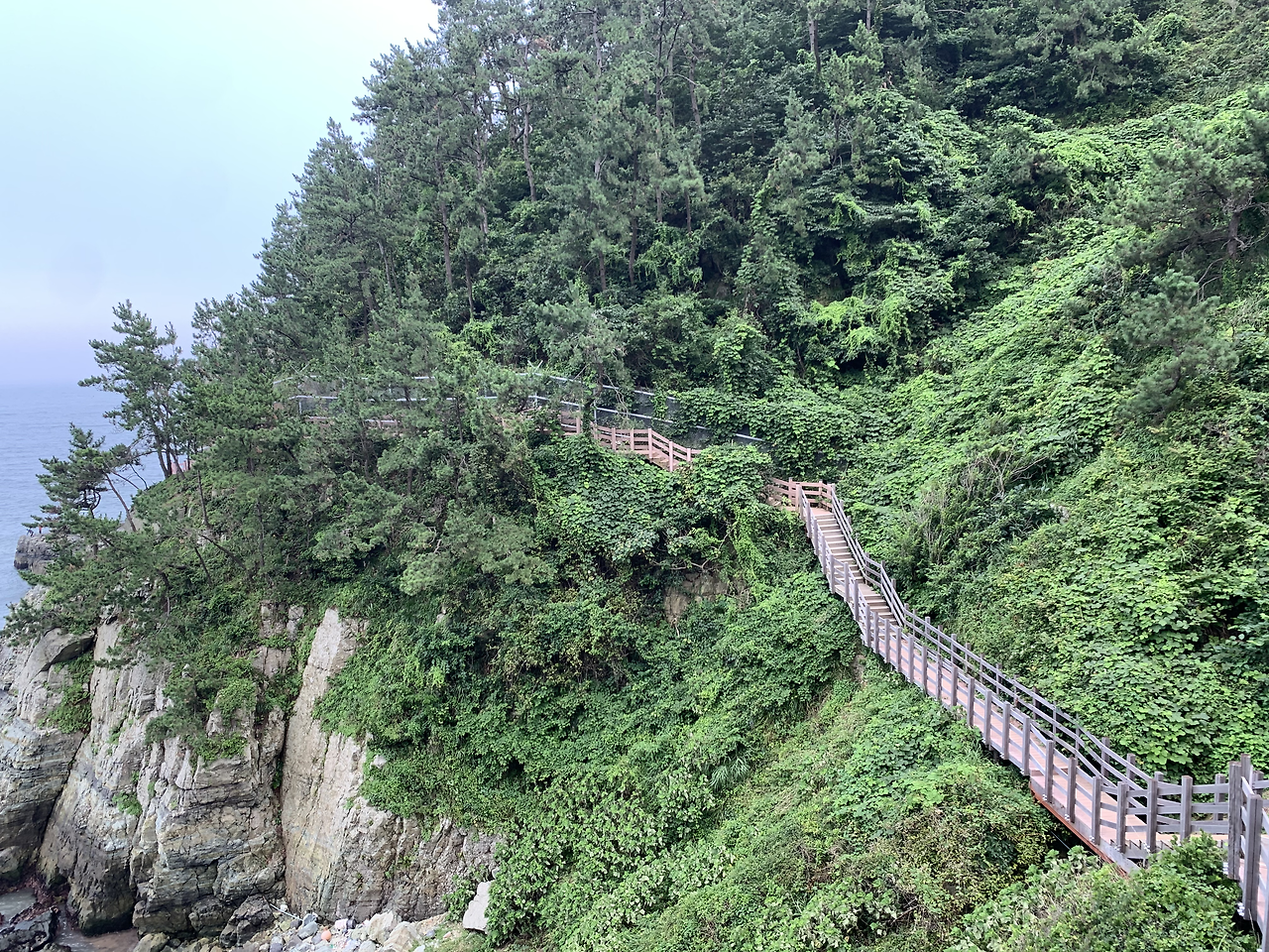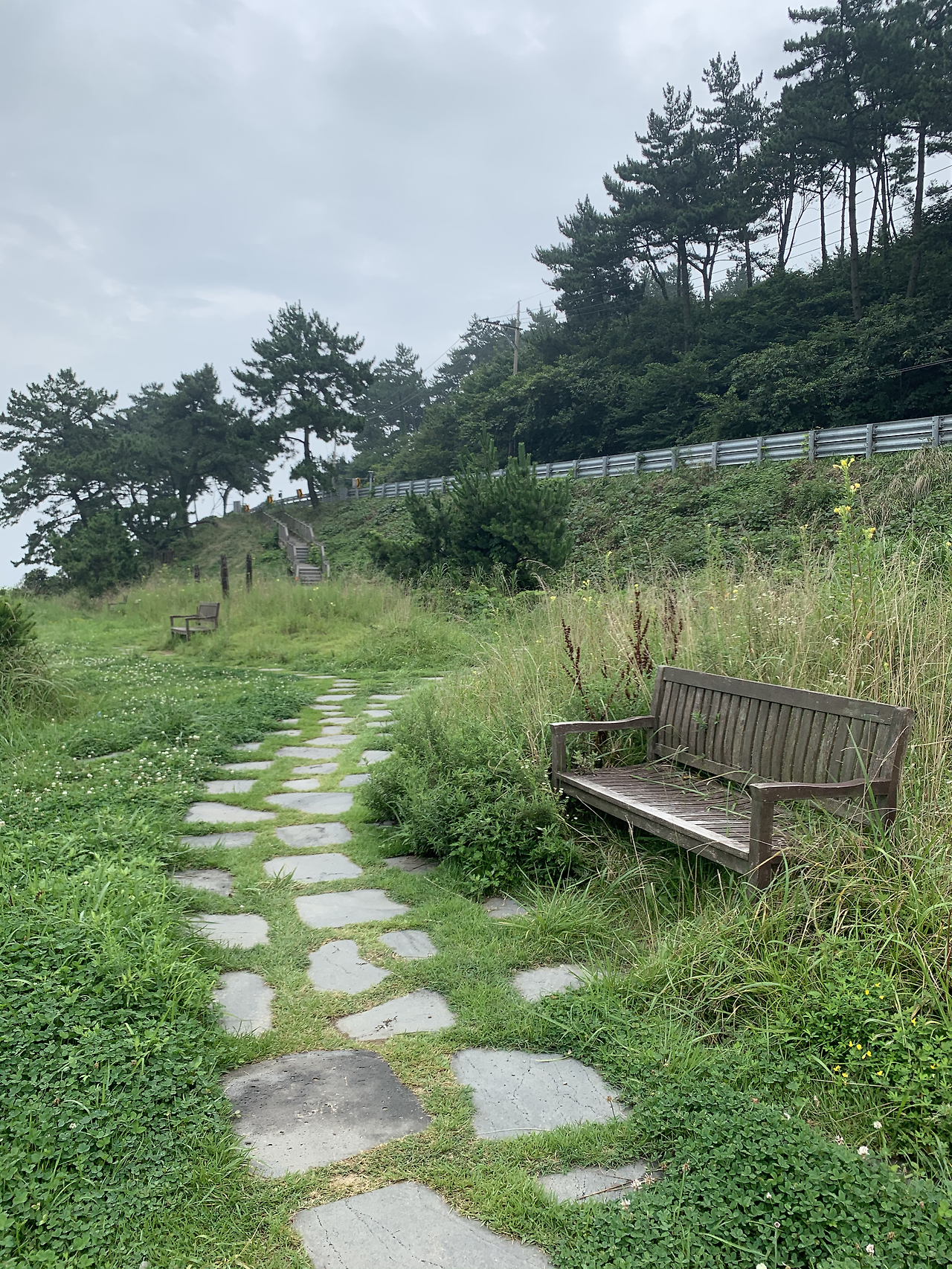 2코스는 다른 코스들에 비해 상대적으로 짧고 편한 길이다. 원래는 5시간 정도면 무난하게 마무리되었어야 할 코스였지만 비 때문에 일부 구간에 체력 소모가 있었다. 우중에 쉬다 걷다를 반복하니 시간이 지체되어 저녁 약속을 위해 당일 완주는 포기, 결국 이틀에 걸쳐 걸었다. 2코스도 바다와 숲을 번갈아가면 만날 수 있는 근사한 길이다. 도중에 편의점과 화장실도 종종 나오기 때문에 편한 마음으로 걸을 수 있다.