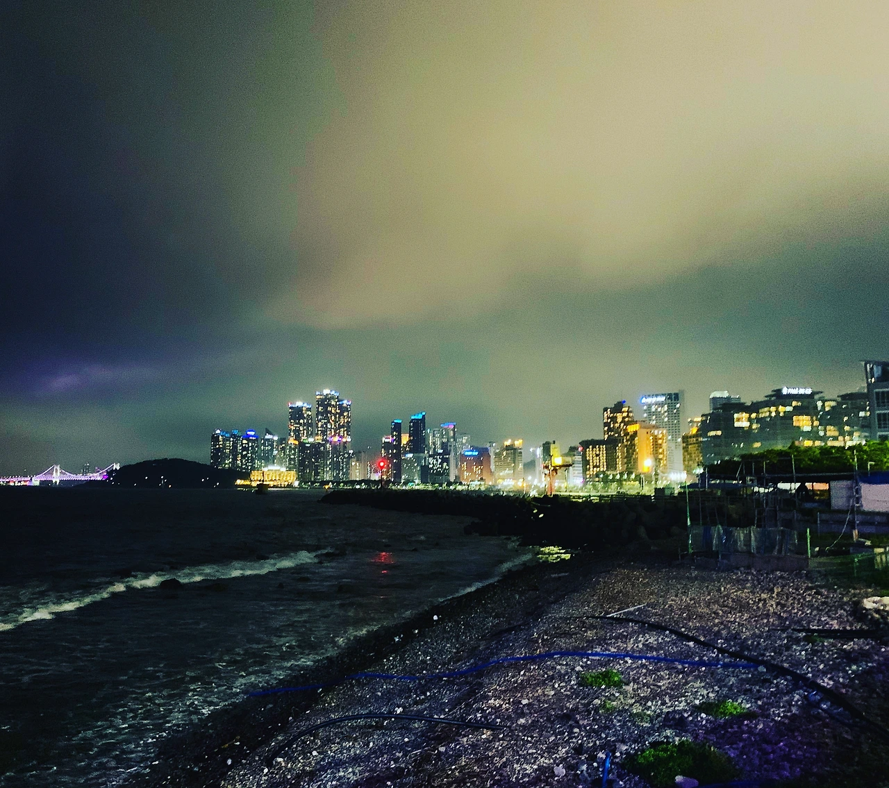 위 사진은 미포항에서 해운대 해변을 바라보며 찍은 사진이다. 비구름이 덮여있고 바람이 세차게 불던 밤이었다. 해파랑길 부산 구간의 매력이 이런 게 아닐까. 낮에는 자연 속에서 걷고, 밤은 도시 관광지 부산의 매력을 온전히 느낄 수 있다. 미포항에서 회 한 접시 먹은 것도 좋은 기억이었다.