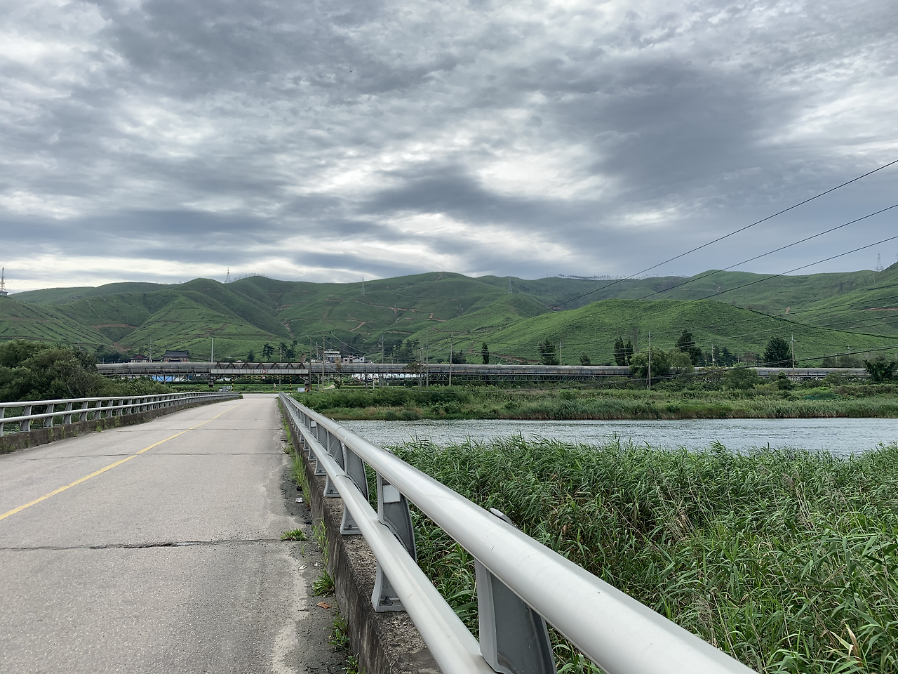 장마가 막바지던 8월 15일이었다. 33코스는 추암해변에서 시작한다. 깔끔한 해변과 상가, 오토캠핑장, 출렁다리, 촛대 다리 등이 있는 관광지구다. 32코스는 전반적으로 무난한 코스지만, 종일 비가 내렸다는 것. 장마 끝났겠지 싶어서 판초를 챙겨 오지 않은 탓에 한 손에는 우산을 들고 걸어야 했다.