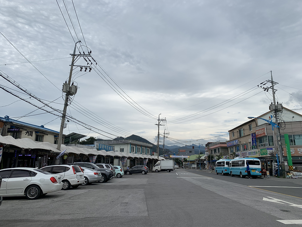 34코스를 걸은 건 폭염주의보가 내려진 8월 16일이었다. 오전에 잠깐 흐린가 했는데 타는 듯한 폭염이 종일 쏟아진 날이었다. 북에서 남으로 역방향으로 걸어 내려왔다. 대중교통으로 이동하는 것이 거의 불가능해 보여서 숙소에서 택시를 타고 갔다. 역으로 내려와야 기차를 타러 묵호역으로 돌아갈 수 있기 때문이었다. 강릉 쪽은 기차가 모두 매진이었기 때문에 선택의 여지가 없었다. 일단 34코스 끝단에서 35코스 스탬프를 찍기 위해서 옥계 현내 시장에서 시작했다.