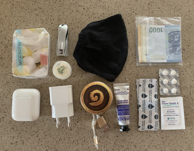 걸어 다니는 사람이 된 뒤, 파우치 구성물이 달라졌다. 일반 마스크 분실을 대비한 비상 마스크. 돌돌 말아서 들고 다닐 수 있게 면 마스크로 넣었다. 그리고 지갑 분실 대비 비상금도 비닐에 넣어 파우치 한 구석에 숨긴다. 먼 길을 걷다 보니 물집이 잡히는 경우가 있어서 밴드, 자잘한 부상 대비용 티슈, 알코올 스왑과 진통제. 그리고 그 외엔 핸드크림, 고체 치약, 이어폰과 충전 줄. 특이사항은 손톱깎이. 야외를 돌아다니다 보니 생각보다 칼이 필요한 때가 종종 있었다. 가시를 뽑거나 뭔가를 자르거나 끊는 용도. 스위스 칼 같은 걸 마련할까 싶었지만 등산이 아닌 다음에야 좀 오버인 것 같고, 손톱깎이가 대체할 수 있는 부분이 있는 것 같아서 일단 넣고 다닌다.