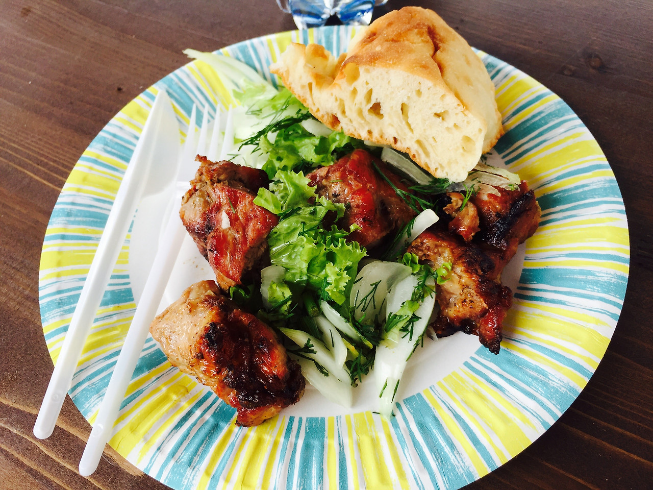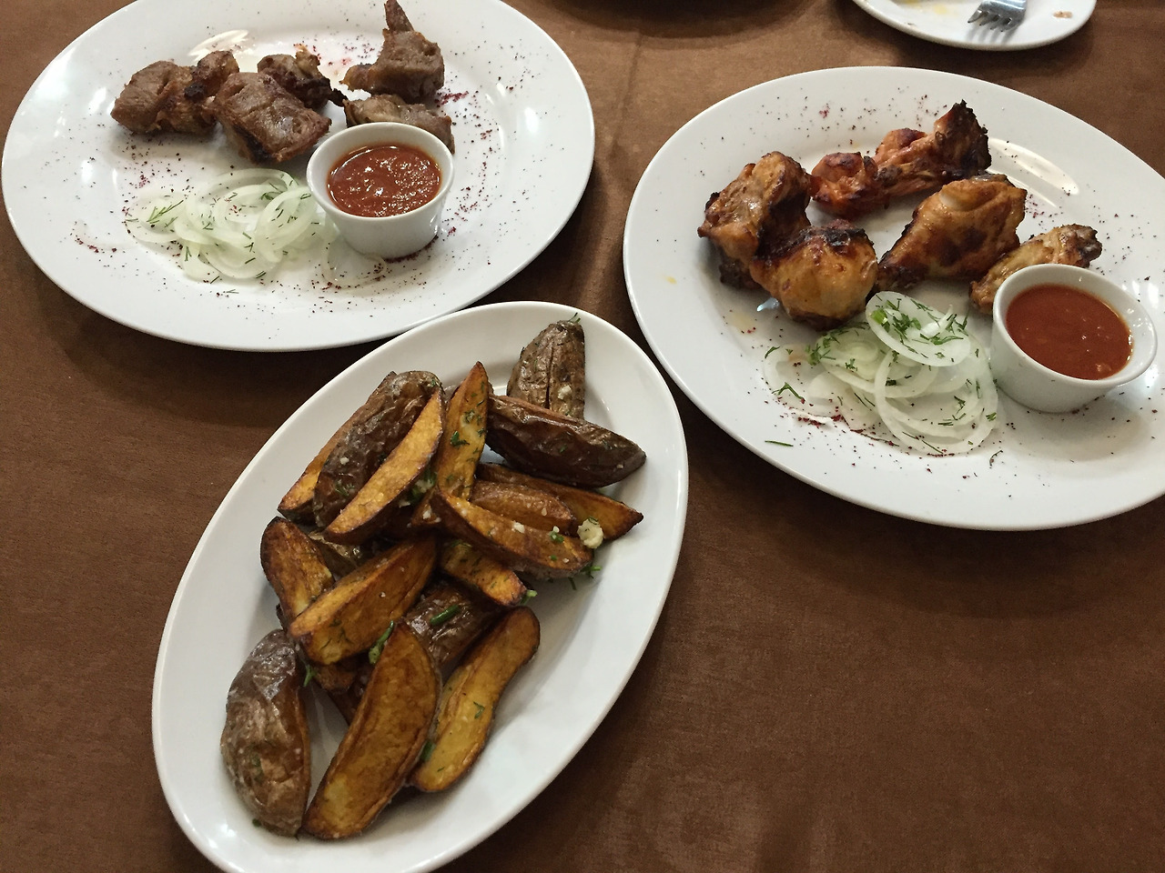 [샤슬릭] 음식은 다 맛있었고 양고기 샤슬릭이 최고였다. 원래 큼직하게 썬 양고기를 양념에 재워 숯불에 구운 음식인데 닭고기 돼지고기 등의 꼬치구이도 샤슬릭이라고 하는 듯. 입맛에 맞아서 5끼 정도는 샤슬릭으로 먹었다. 겉은 탄듯하게 바삭하면서 속은 육즙이 살아있고 양념이 잘 배어져 있어서 술술 넘어간다.