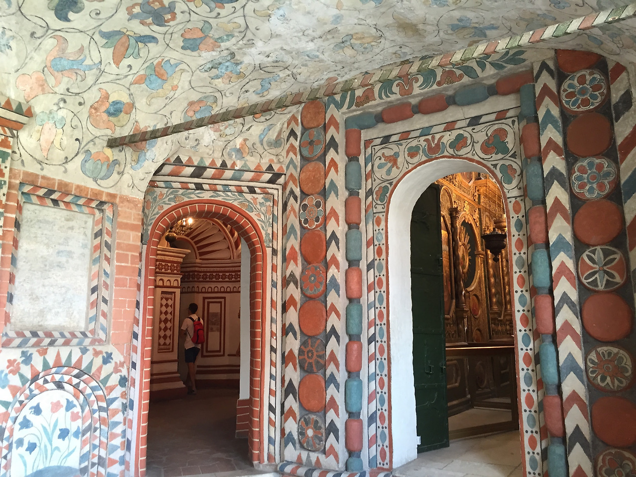 위 사진은 감시카메라만 아니면 완벽한 천장이라고 생각한 곳. 하지만 사진을 보다 보니 저 감시카메라가 완성하는 매력이 또 있다. 성 바실리 성당 내부 사진 중에서 제일 좋아하는 장면이다.