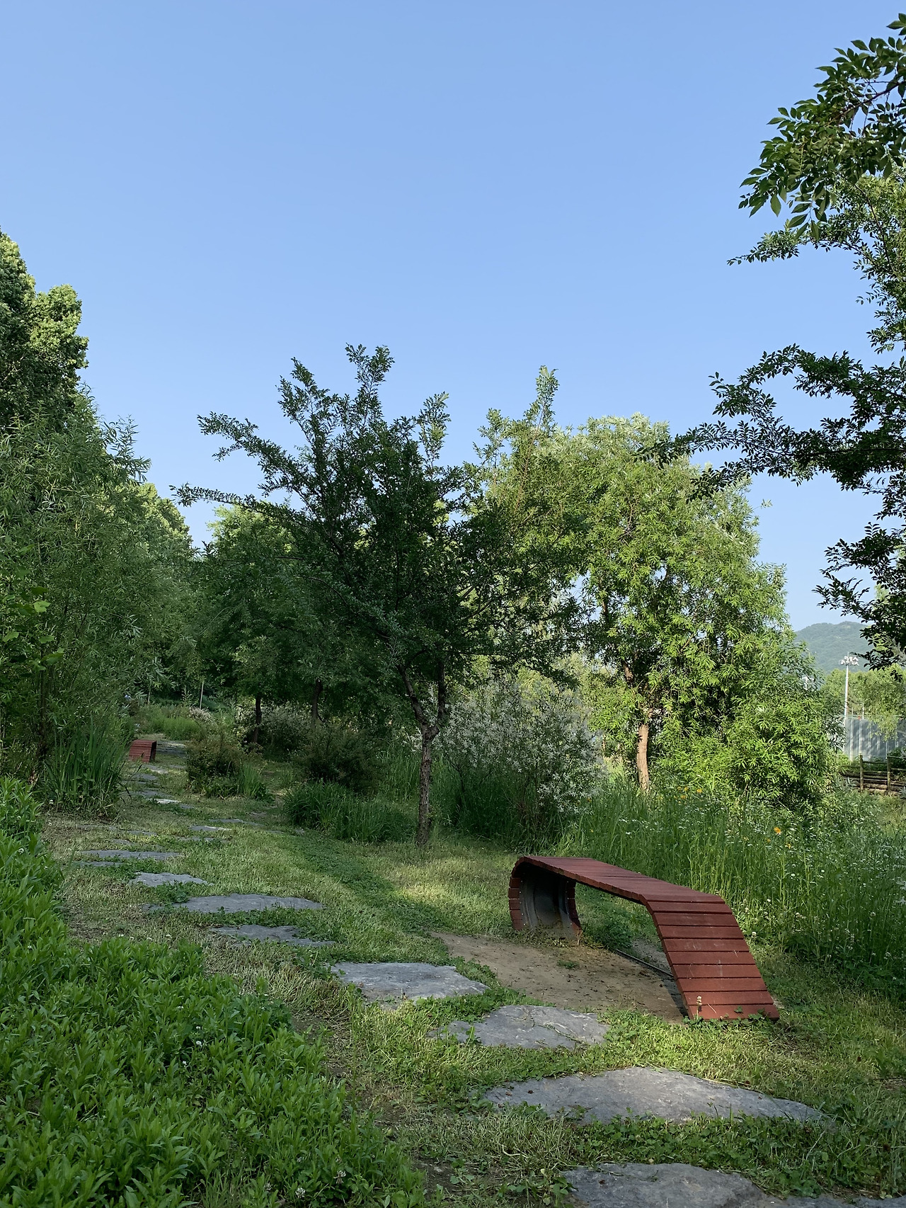 소가 잠자는 모양을 닮았다는 우면산의 둘레길 코스는 대모산 코스와 유사한 구성이지만 좀 더 짧고 가벼운 편이다. 오르막 구간이 적지는 않지만, 깔끔하게 정비된 양재 시민의 숲도 구간도 포함되어 있어서 전체적인 난이도는 4-1보다는 낮은 편이다. 이 코스도 숲길이 근사하다. 한국적이면서도 묘하게 이국적인 풍경이 펼쳐지는 숲길을 천천히 즐기면서 걸으면 "여기 서울 맞아?"라는 생각이 절로 든다.