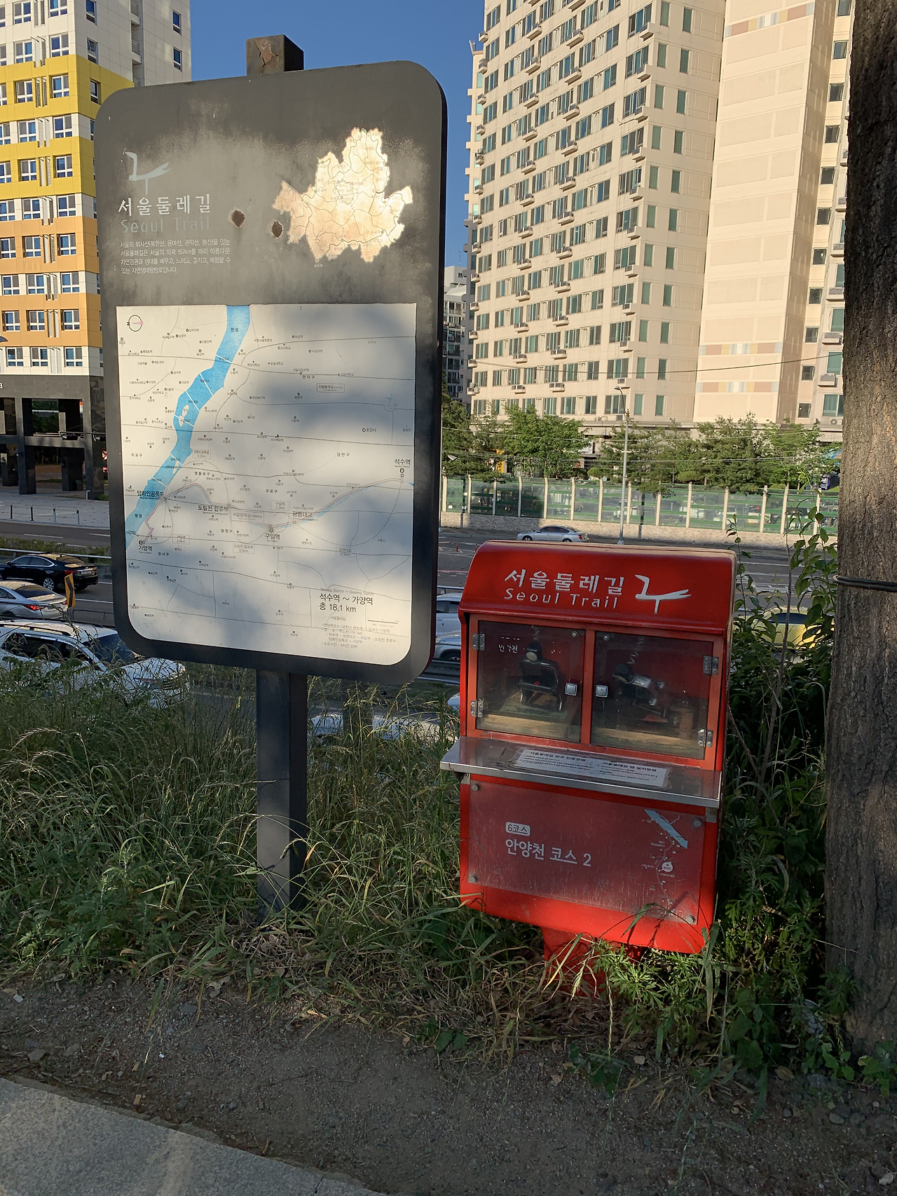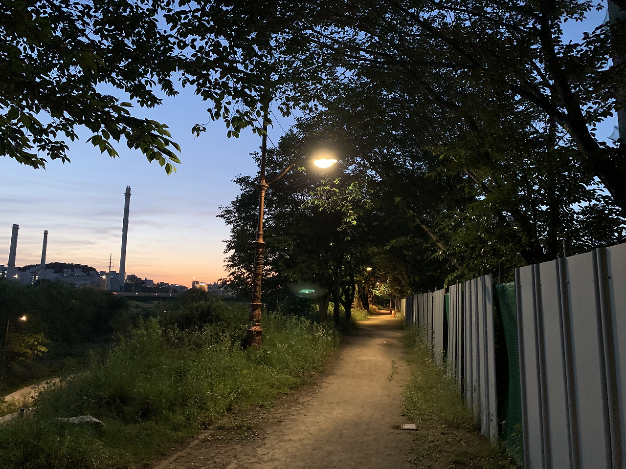 그런데, 과연 코스설명에 나온 것처럼 야간에도 걷기 좋은 길인지에 대해서는 의문이 가는 구간이 좀 있다. 해가지기 시작하자, 여자 혼자 밤에 걷기엔 좀 으스스한 길이 나타나기 시작했다. 물론 가로등이 잘 되어 있긴 하지만 공사구간도 있고 다소 으슥하기도 했다. 나야 해지는 길을 혼자 걸으니 운치가 있어 좋았다만.