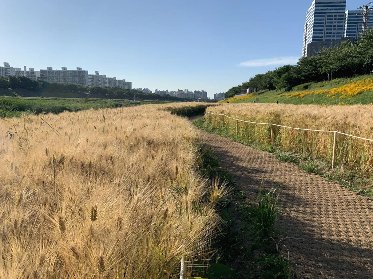 그래서 6코스는 어땠냐고? 근사했다. 안양천을 걸어야 한다면 반드시 5월 말, 6월 초에 걸으라고 추천해주고 싶다. 사방이 꽃밭이다. 이름 아는 꽃부터 이름 모를 꽃까지. 다듬어진 정원부터 길가 잡초까지 온종일 꽃을 보았다. 보리밭도 푸르다. 서울시에 세금 내며 살아온 보람을 느끼는 순간이었다.