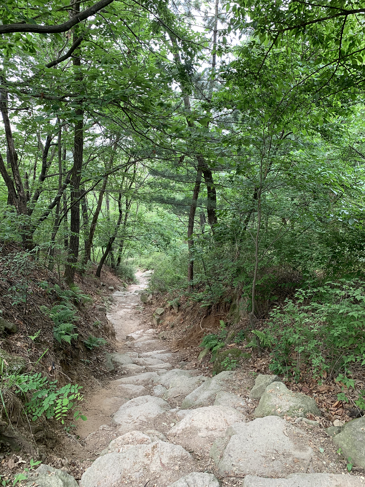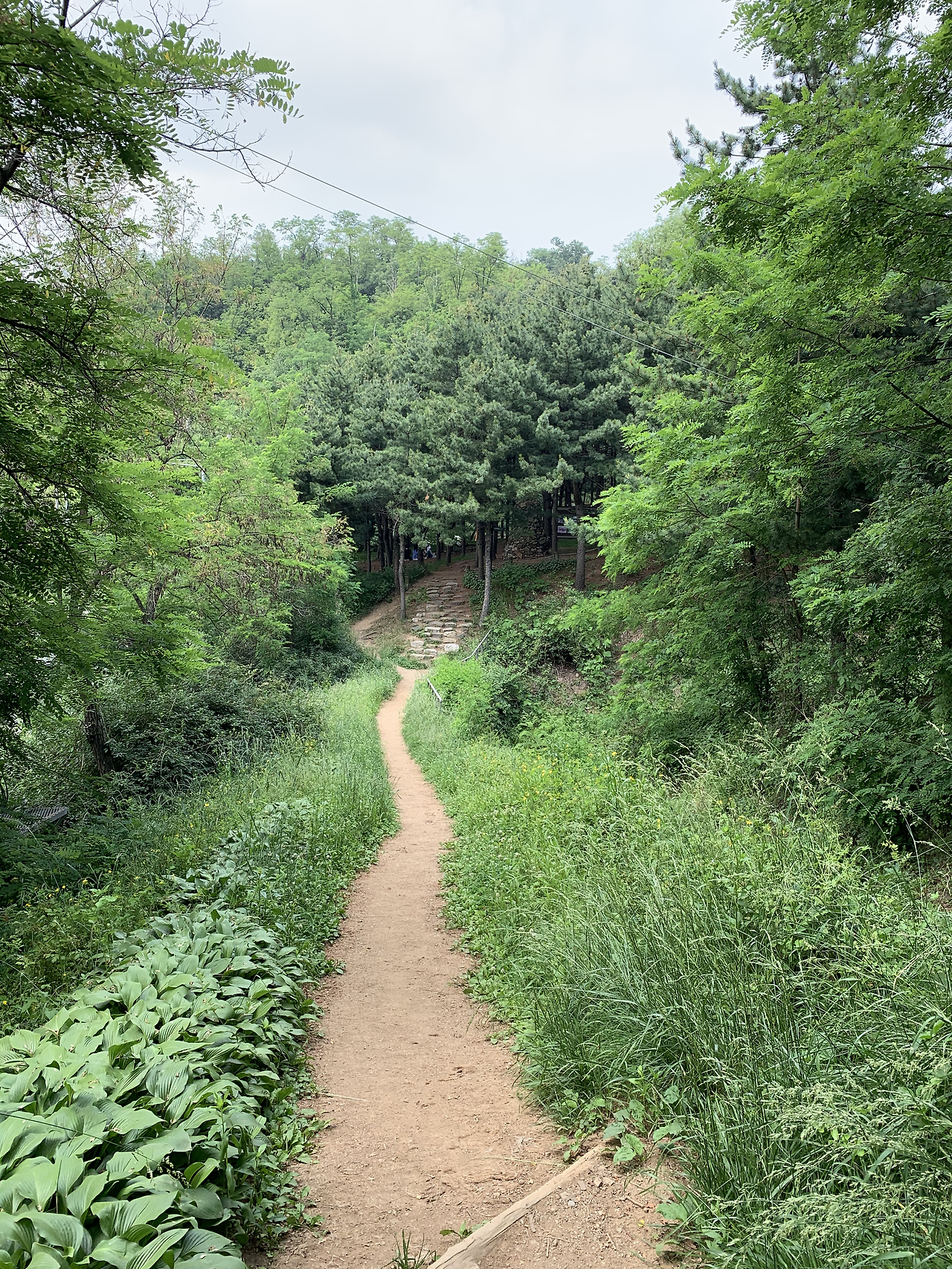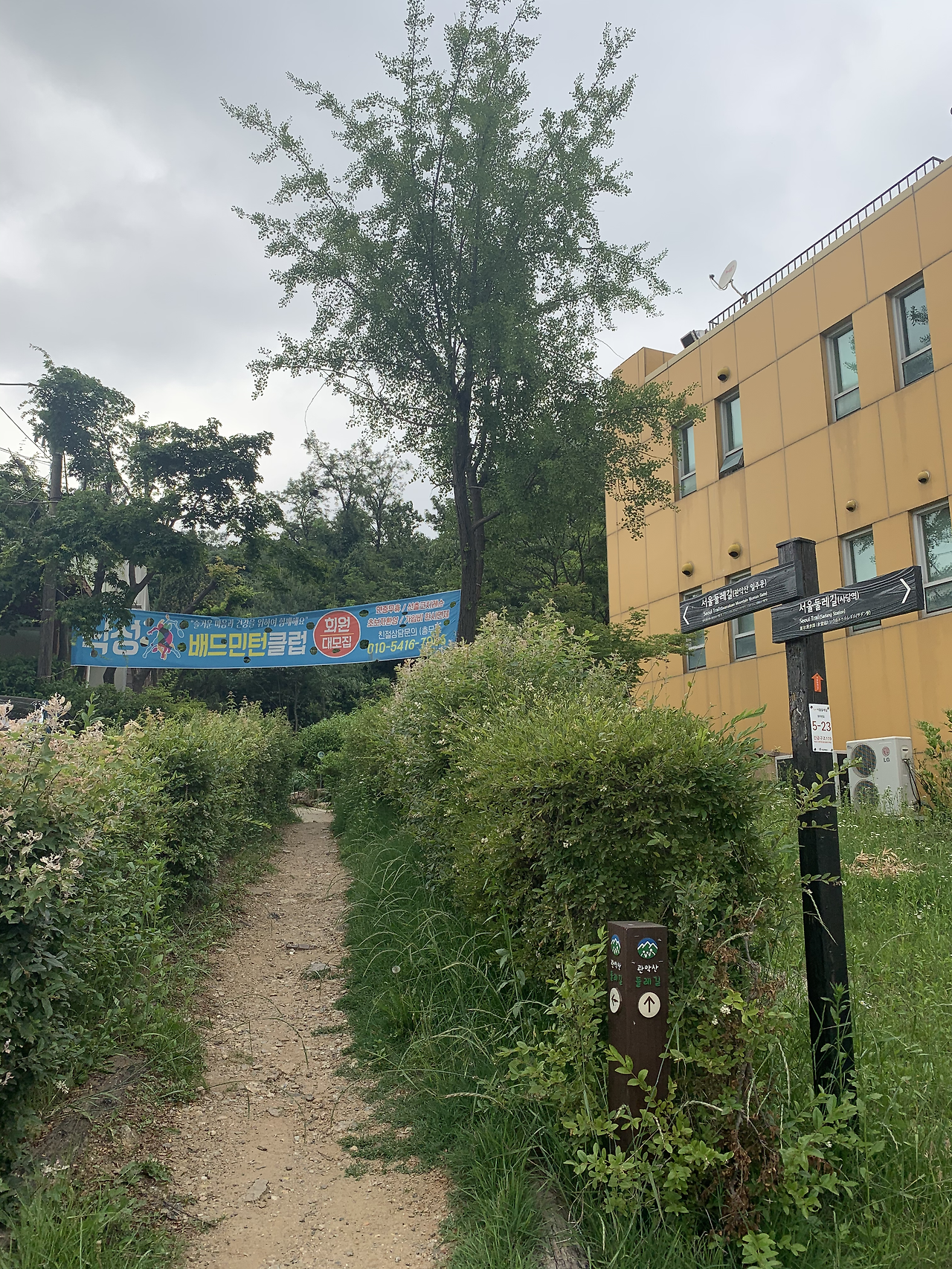 5코스는 사당역에서 시작한다. 시작부터 쭉 오르막을 올라야 한다. 오늘은 마음의 준비를 하고 나왔음에도 불구하고 오르막을 보니 한숨이 나왔다. 하지막 등산가방도 메었으니 씩씩하게! 봄이 가고 여름이 오는 게 실감 나는 길이었다. 산의 연둣빛이 어느새 짙은 초록으로 변해가고 있었다.