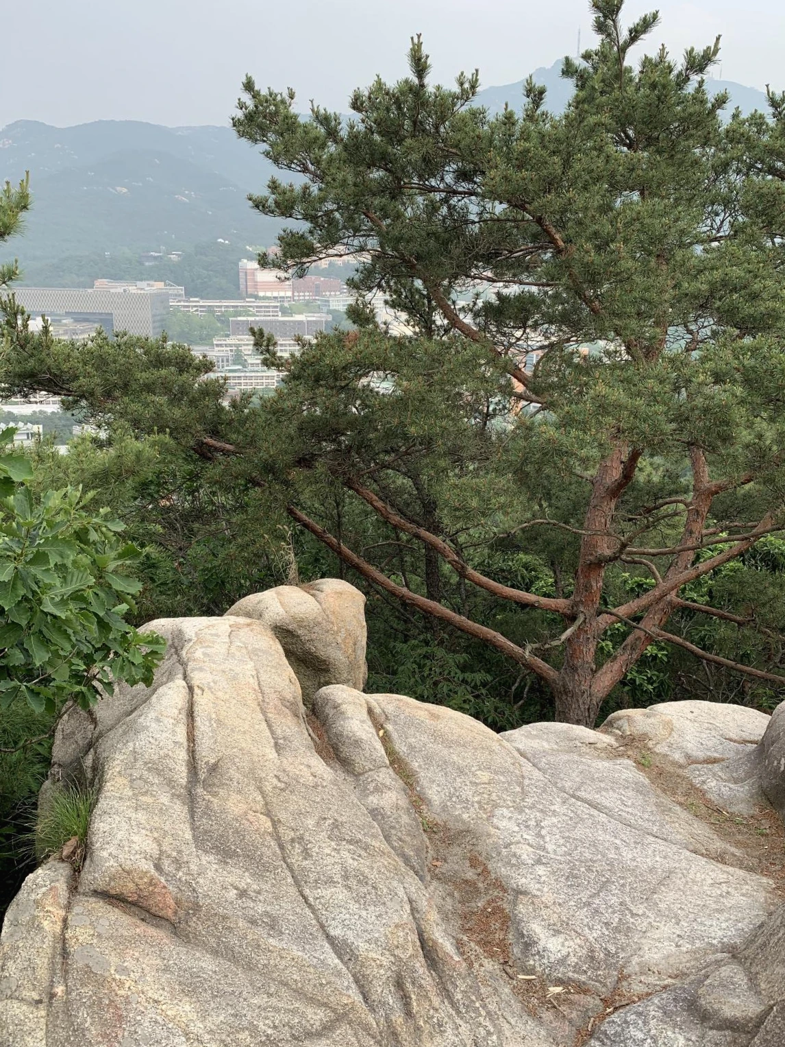 서울 둘레길은 비록 데크길은 잠깐 지나지만 근사한 오솔길이 많다. 오솔길과 돌길을 따라 걷다 보면 또다시 큼직한 돌이 근사한 전망대가 나온다. 서울대가 한눈에 보이고, 적당히 높이 올라온 기분을 즐길 수 있다. 의외로 이쪽 코스는 사람도 많지 않아 고즈넉 하니 조용하게 걸을 수 있었다.