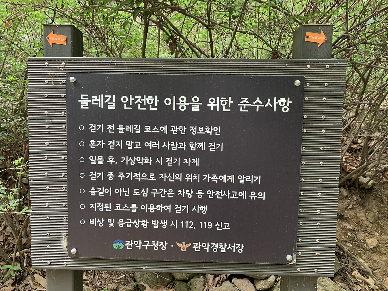 그런데 둘레길은 혼자 걷지 않는 게 권장되는 모양이다. 이건 서울 둘레길만이 아니라 대부분 트레일이 공통적으로 안내하는 내용인 것 같더라. 하지만 한국에서 가장 안전한 트레일 코스가 서울 도심 코스를 제외하면 서울 둘레길이 아닐까 싶다. 기상상황, 일몰시간, 본인의 체력 상태 등을 고려하여 코스만 충실히 따라가면 특별한 문제없을 것으로 보인다.
