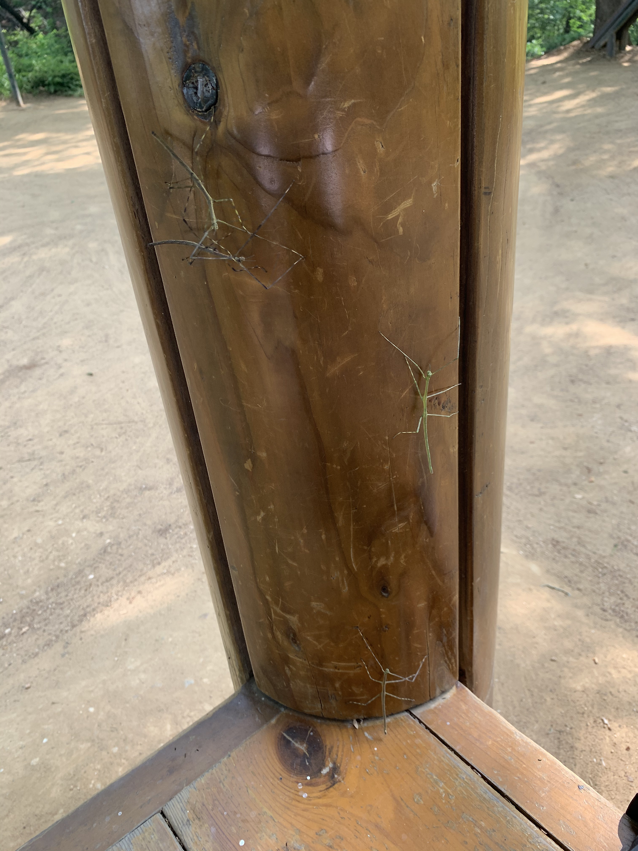 그리고 각종 벌레가 많았다. 특히 막대 벌레가 신기할 정도로 많았지. 다른 데서는 모기 물린 기억이 없는데, 여기서는 엉덩이에 산모기 두 방 물려서 계속 긁으면서 다녔다. 품위고 뭐고 너무 간지러웠다. 강한 놈들이었다. 송충이 같은 것들이 많은데 하나같이 화려하고 예뻤다. 하지만 너무 많고, 사방에서 튀어나오고, 느리기 때문에 등산화에 로드킬 당한 송충이도 종종 보였다. RIP. 가운데 사진은 막대 벌레라는 것 같다. 한 마리가 있가운데 사진 안에 막대 벌레는 총 4마리다. 두 마리는 격렬한 전투 중이다.