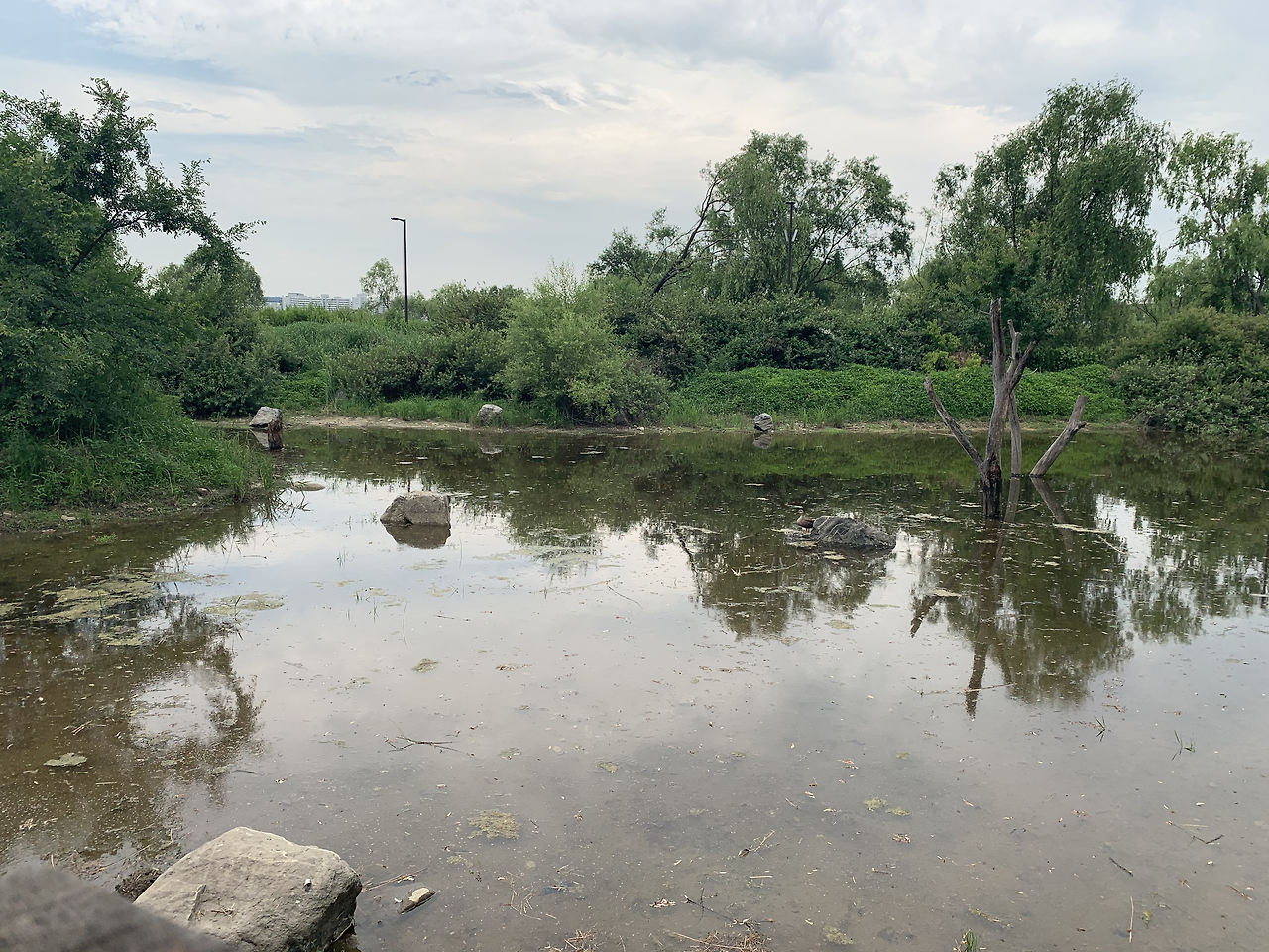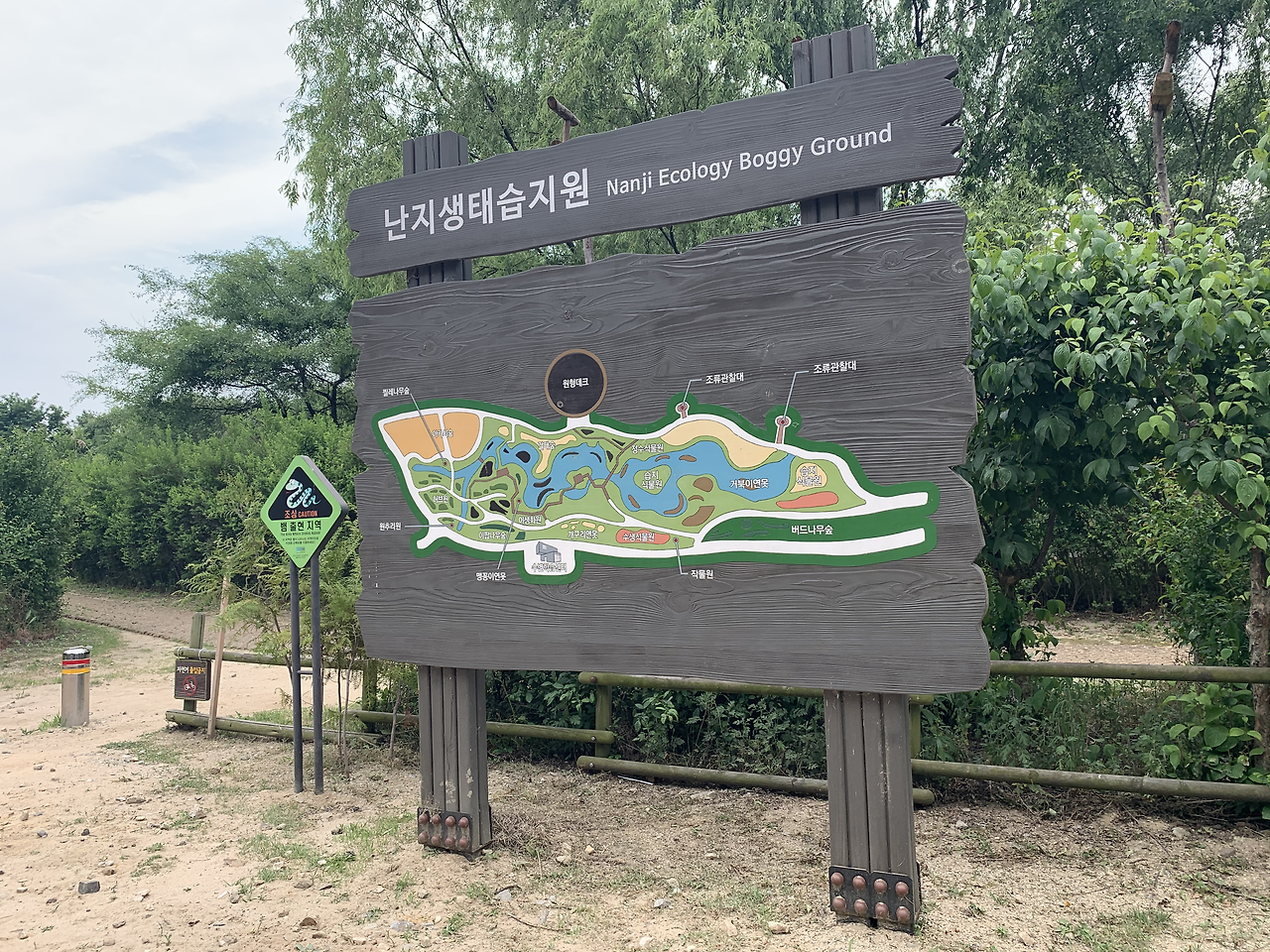 다리를 건너는데, 시야가 시원하다. 한강 중에서도 '다리 밀도'가 낮은 지역이라 그런가, 한강이 시원하게 한눈에 보인다. 아파트도 드문드문, 높은 건물도 보이지 않는다. 서울의 끄트머리에 왔구나 싶은 광경이다. 마침 다리를 건널 때 구름이 끼어서 맑아 보이진 않는다만 시원하다. 다리를 건너면 난지 생태습지원으로 들어서게 된다. 둘레길은 이 습지원을 그냥 지나게 되는데, 시간이 넉넉하니까 습지 구경을 하고 갔다.