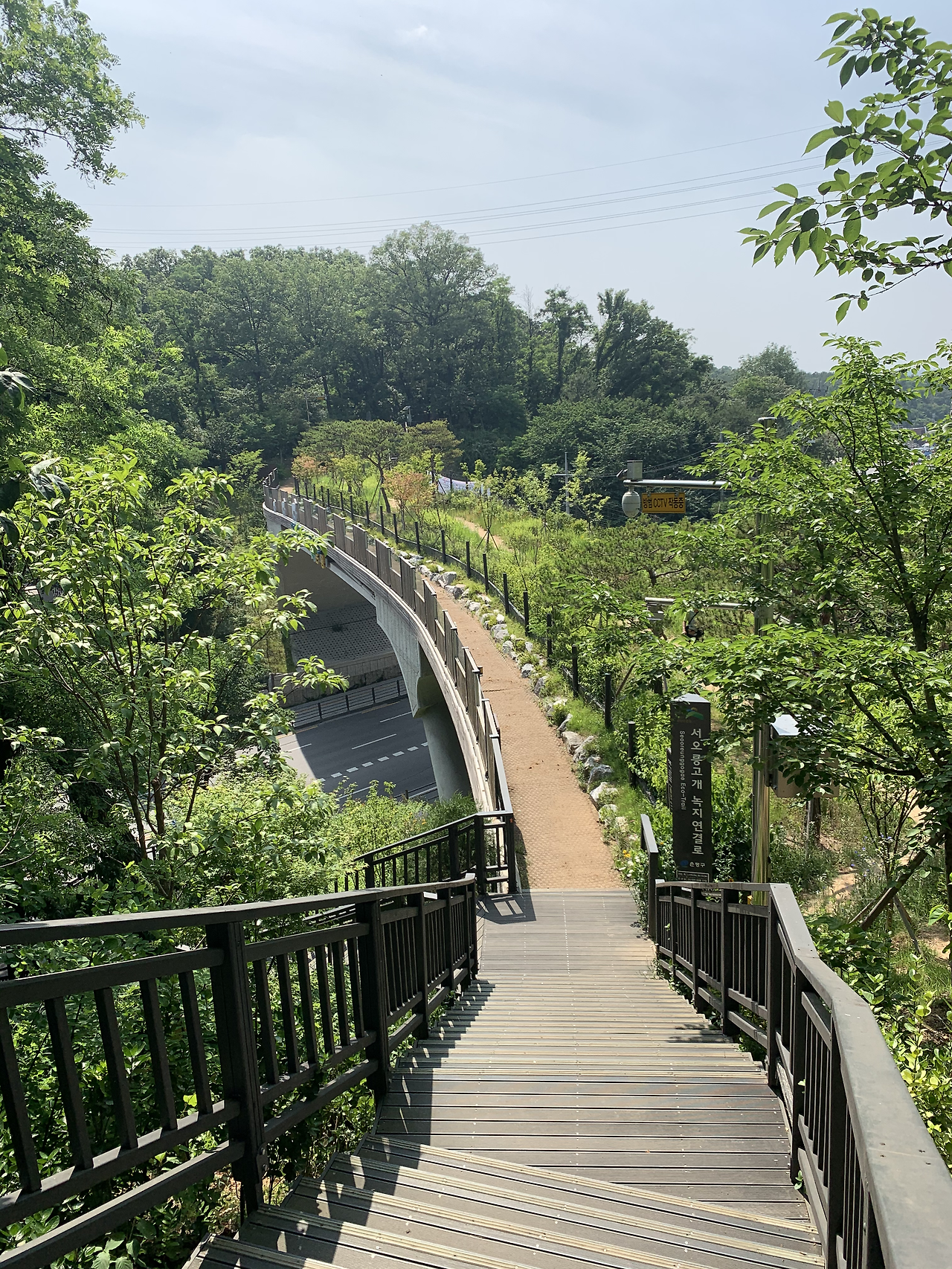 이제 그만 나오겠지 싶은데 또 오르막, 또 오르막. 무릎 안 좋은 사람들은 참고하자. 위 사진이 서오릉고개 녹지 연결교이고, 저 다리만 건너면 한 숨 돌릴 것 같지만 아니다. 산너머 산이라고 앵봉산 올랐다가 서오릉 지역을 지나면 이제 다시 봉산을 올라야 한다. 봉산. 멋지긴 한데 또 산이라는 단점이 있다.