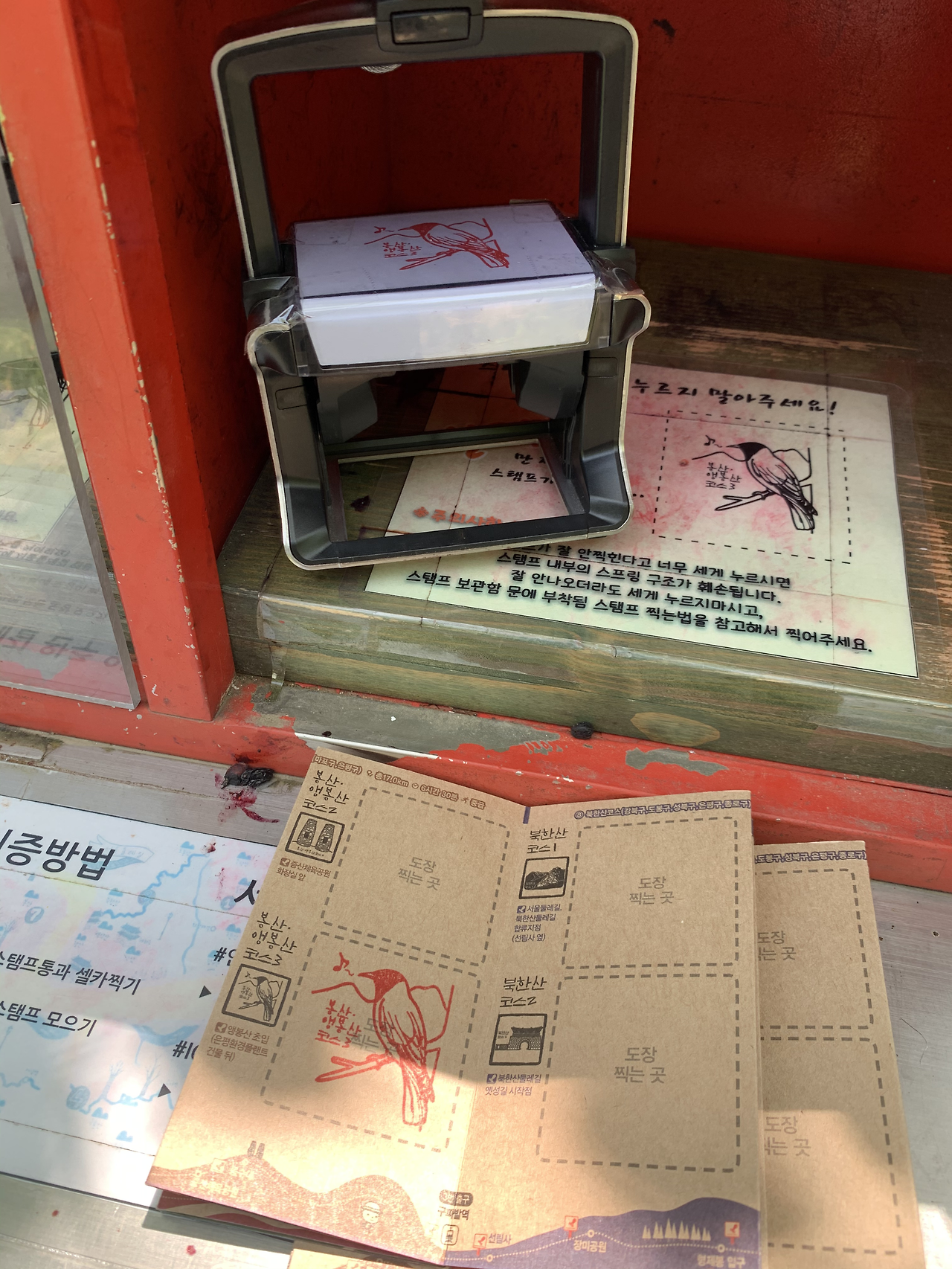 내려오는 길에, 이건 은평구가 신경 좀 썼구나 싶은 잘 정비된 길들이 나온다. 나중에 찾아보니, 과거 봉산 산책로 훼손이 심해서 재건에 신경을 좀 썼다는 얘기가 있다. 길을 걷는 사람들을 기분 좋게 해 주겠다는 마음이 느껴지는 길이다. 내려오는 길에 또 사방을 돌아볼 수 있는 포인트들이 나온다. 타박타박 내려오면 이제 오늘의 마지막 스탬프.