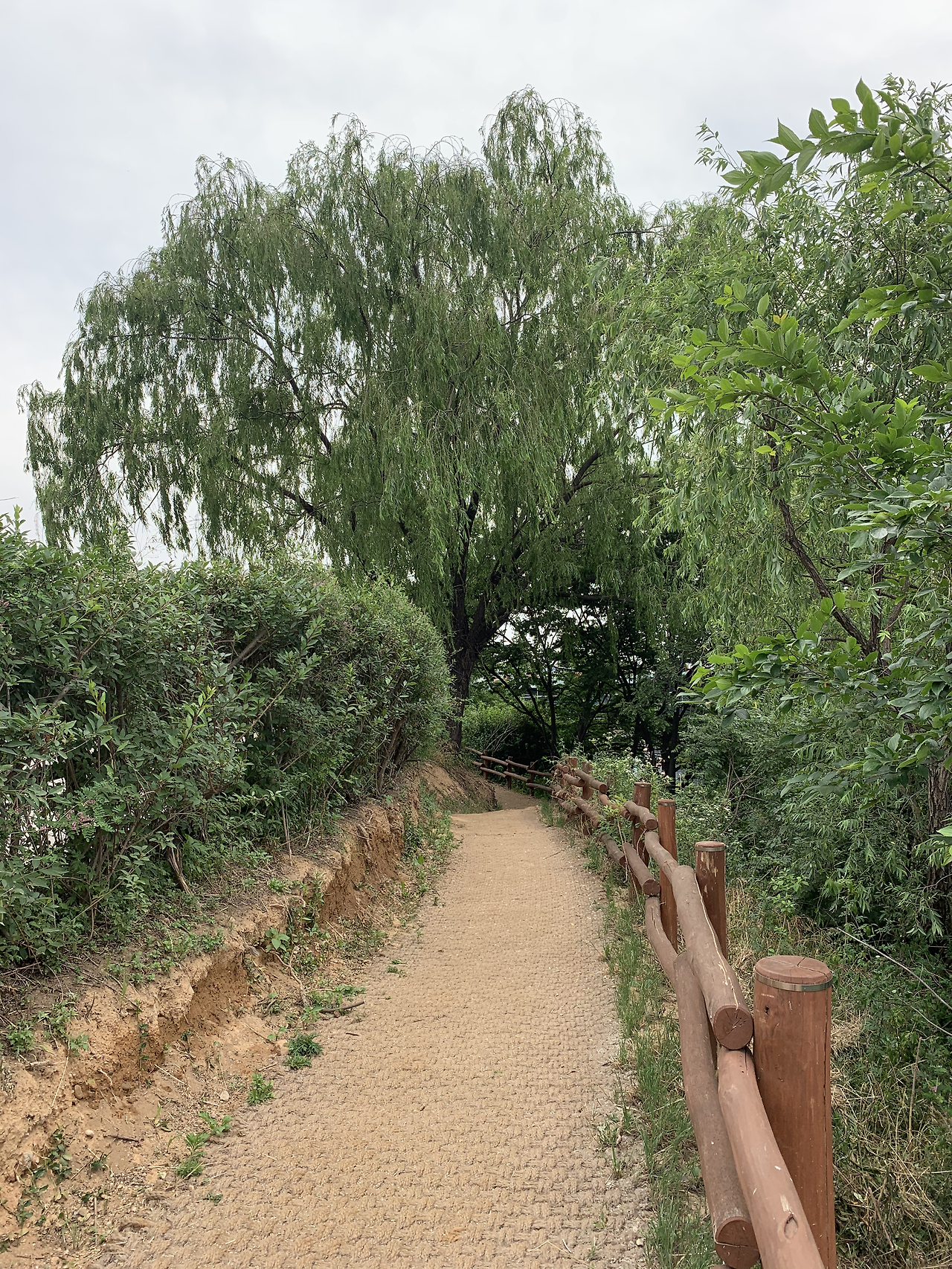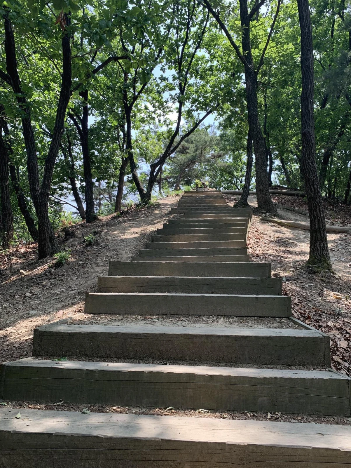 생태습지원을 나와서 걷는데 엄청난 오르막으로 안내해서 설마설마하고 놀랐다. 하지만 그 계단은 노을공원으로 가는 거였고, 둘레길은 거기서 메타세쿼이아 길로 빠진다. 뭔가 인생에 어려움이 있을 때 생각을 잊기 위해 한 번 올라가야지 싶었던 높고 높은 계단이었다.
