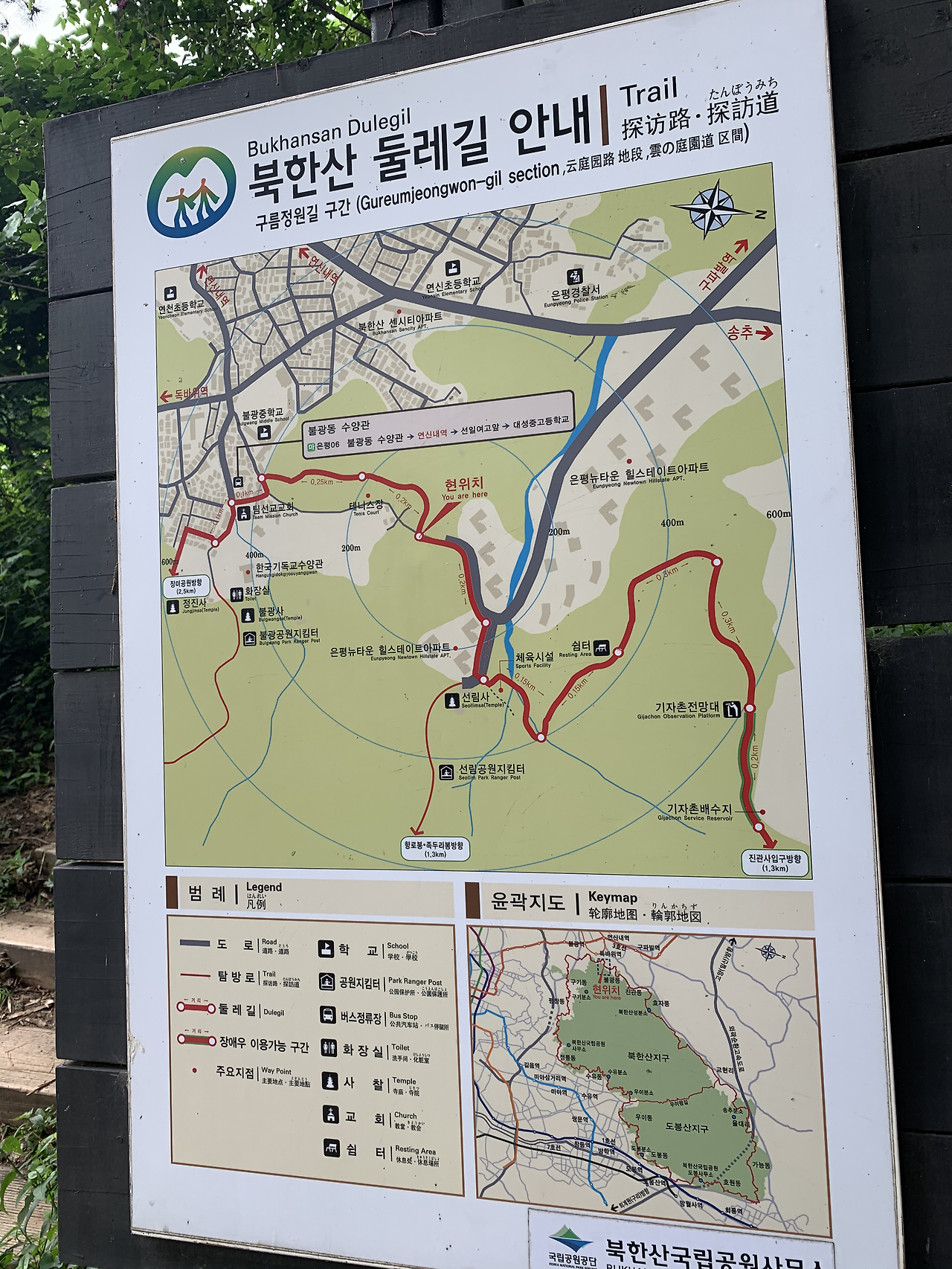 서울 둘레길의 절반 정도 길이(71.8킬로미터)인 데다, 서울 둘레길 8코스와 30킬로 이상이 겹쳐서 쉽게 끝날 줄 알고 시작한 북한산 둘레길. 하지만 장마철 시도 때도 없이 내리는 비로 인해 더위와 습도로 인해 생각보다 힘들게 끝났다.