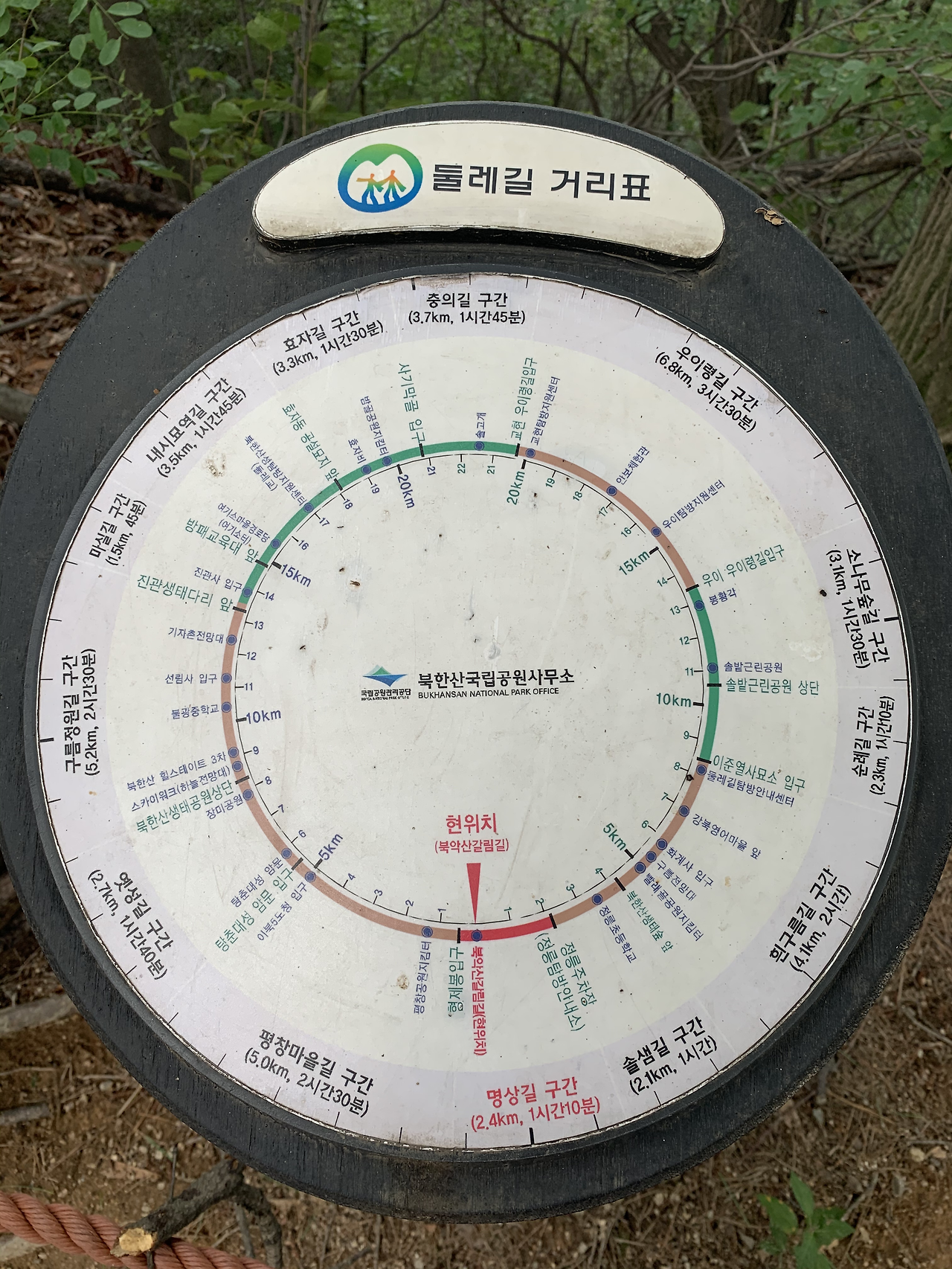 일단 서울 둘레길과 달리 북한산 둘레길은 길 자체는 단순하다. 맨발로 걸을 수 있는 구간도 있다 대부분 직진하면 되고, 헷갈리거나 엉뚱한 길로 가게 될 가능성은 적다. 각 코스도 다소 짧아서 걷다가 더 걷고 싶거나 그만 걷고 싶을 때 탈출구 간이 자주 나오는 편이다. 보통 1~2시간이고 긴 코스가 2시간 반이다. 물론, 체력과 날씨 상태에 따라 시간은 달라질 수 있다. 나는 안내된 시간보다 늘 더 걸렸다. 남은 시간이 잘 가늠이 되지 않는다면 곳곳에 설치된 둘레길 거리표를 확인하자. 모든 구간이 나와있는 건 아니지만 참고가 된다.