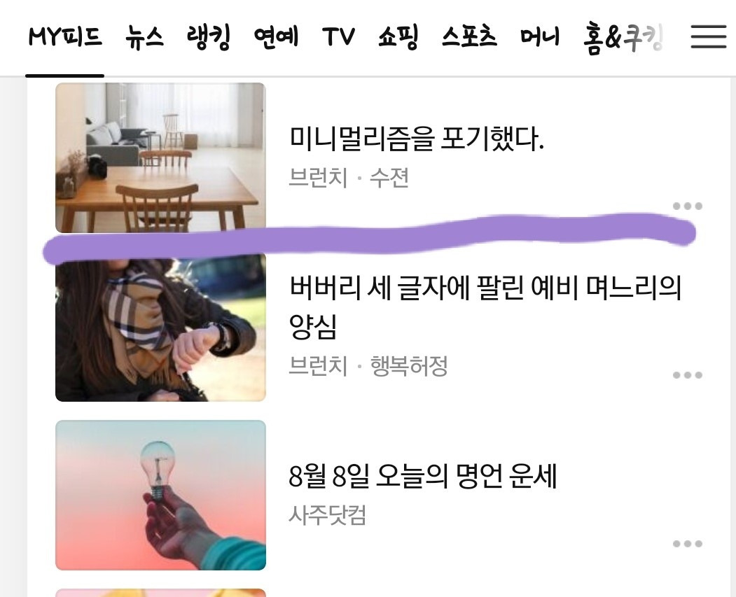 다음이나 브런치 메인에 유독 정리, 인테리어, 미니멀 라이프에 관련된 이야기들이 많이 보인다.